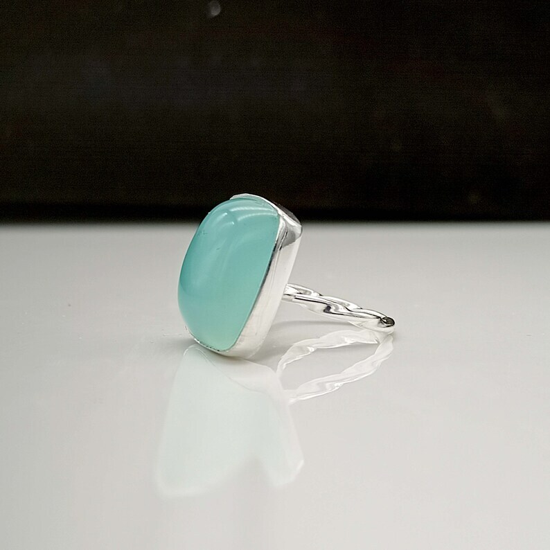 как выглядит Good Aqua Chalcedony Gemstone 925 Sterling Silver Handmade Ring All Size K-57 фото