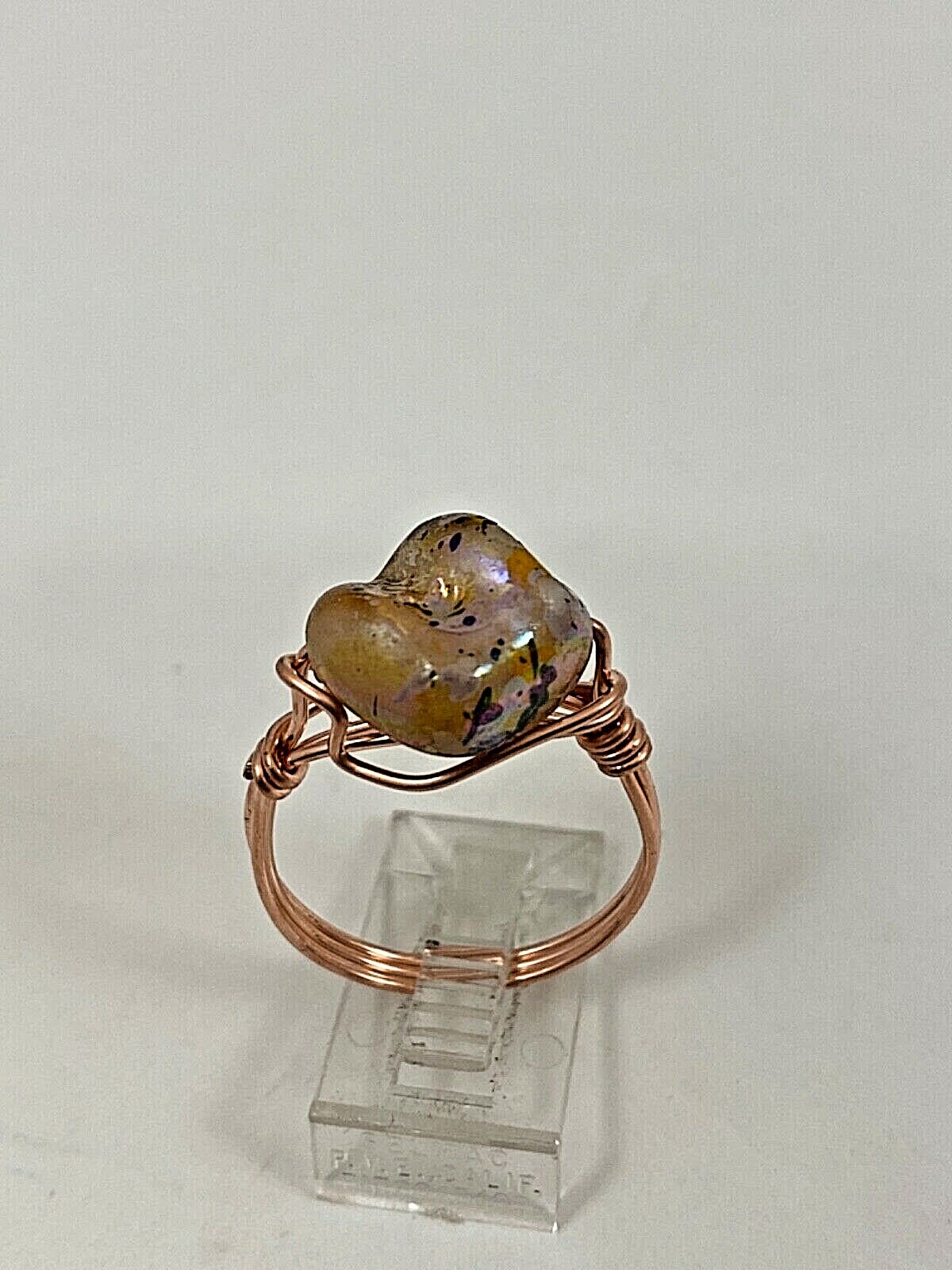 как выглядит Handmade Copper Wrap Lustrous Orange/Black Mother Of Pearl Ring Size 10.5 34 фото