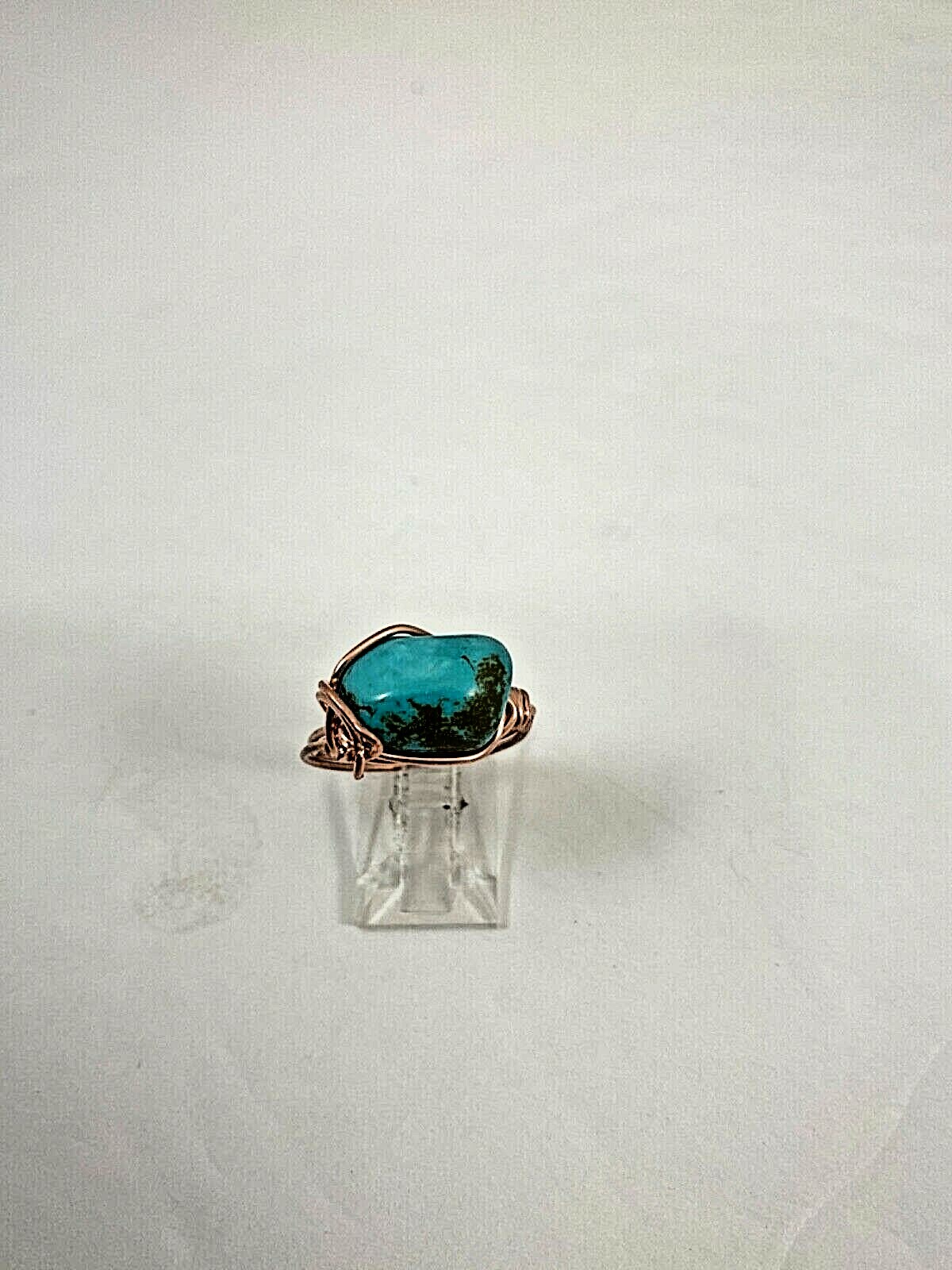 Handmade Copper Wire Wrap Turquoise Ring Size 8 1/2 60