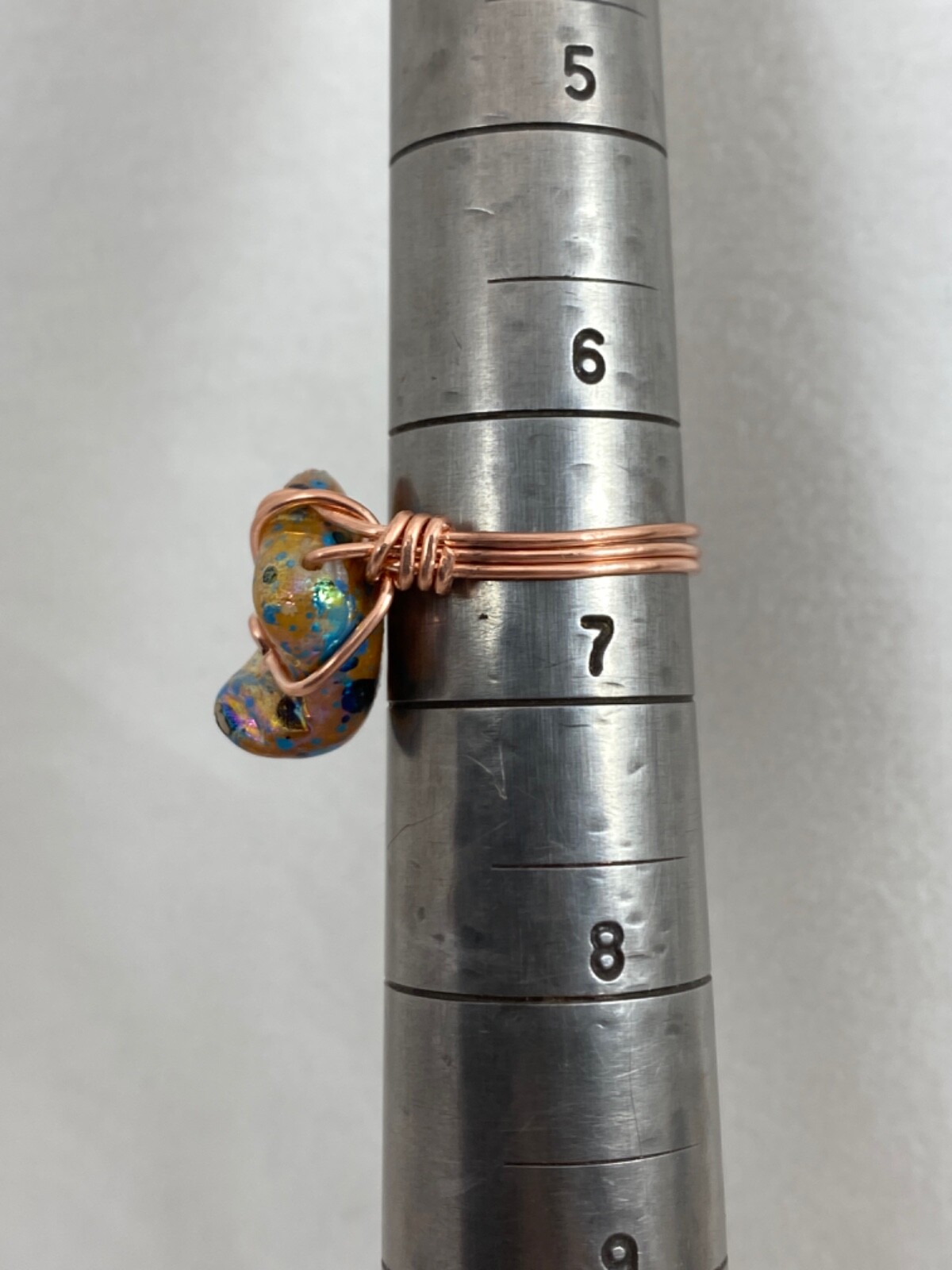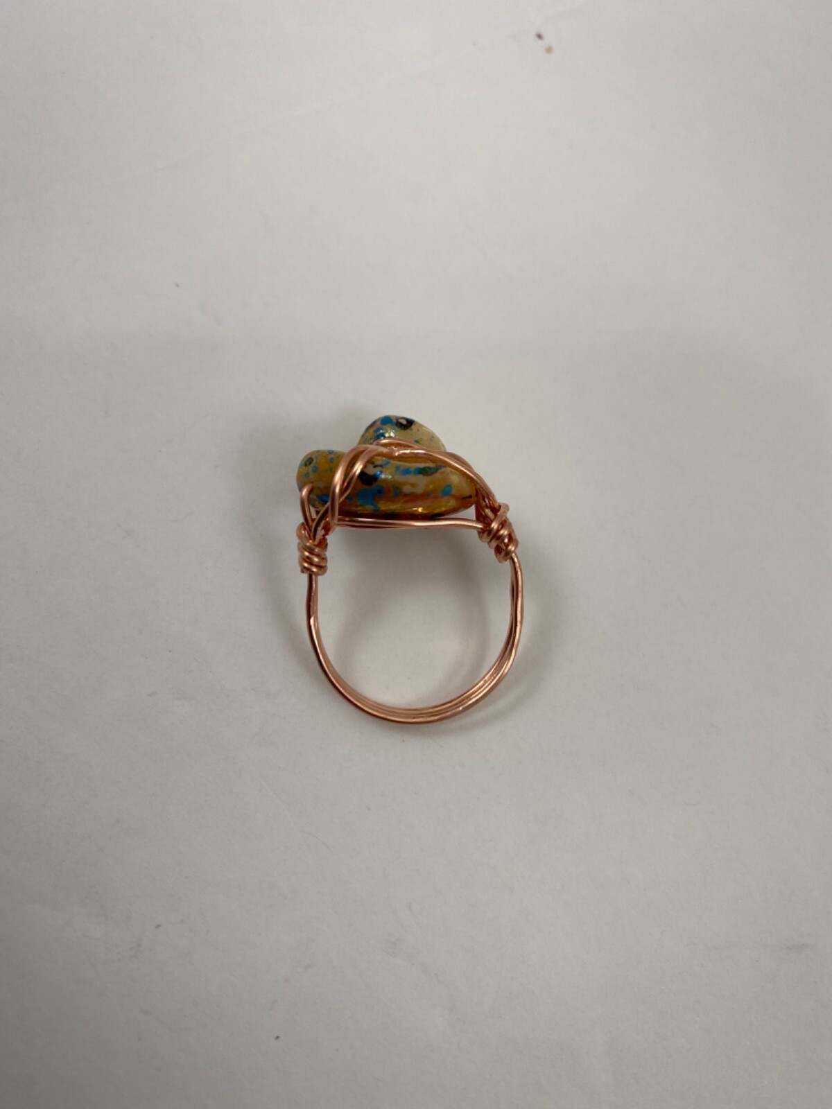 Handmade Copper Wire Wrap Iridescent Copper Blue Mother of Pearl Ring Sz 6.5 45