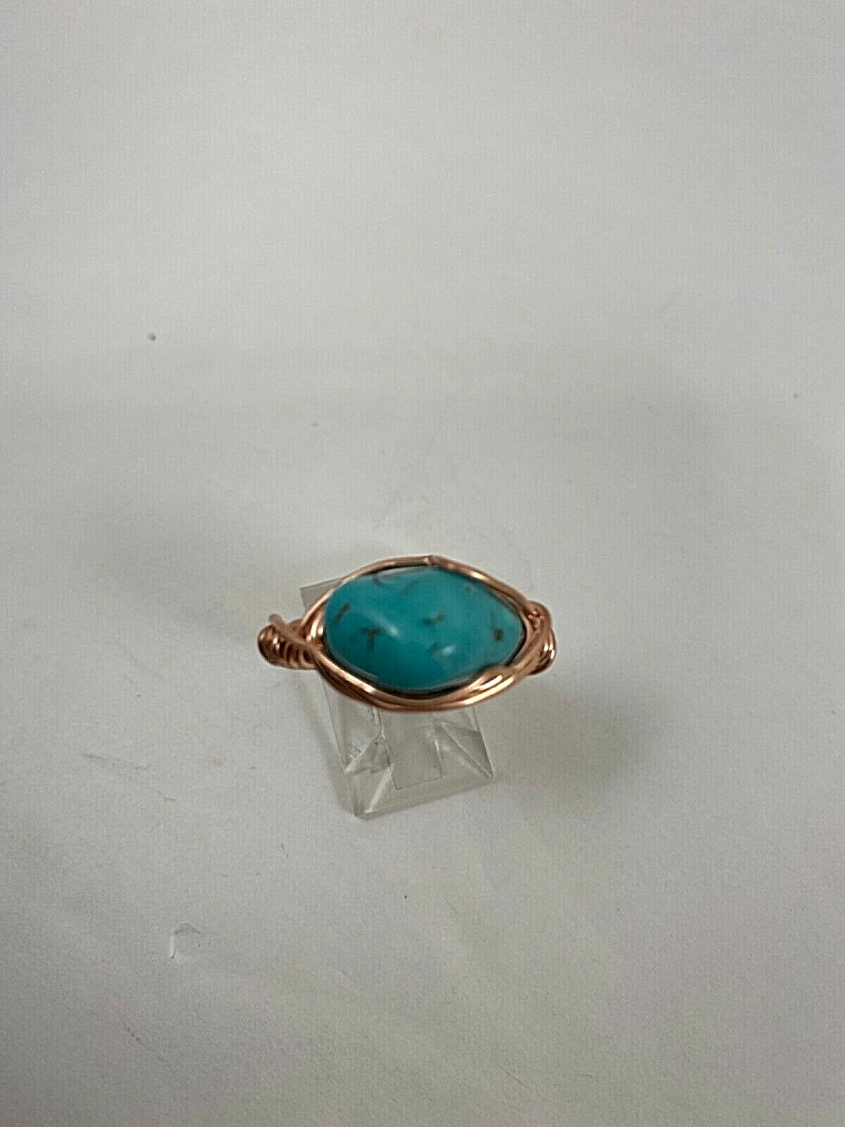 Handmade Copper Wire Wrap Turquoise Ring Size 9 58