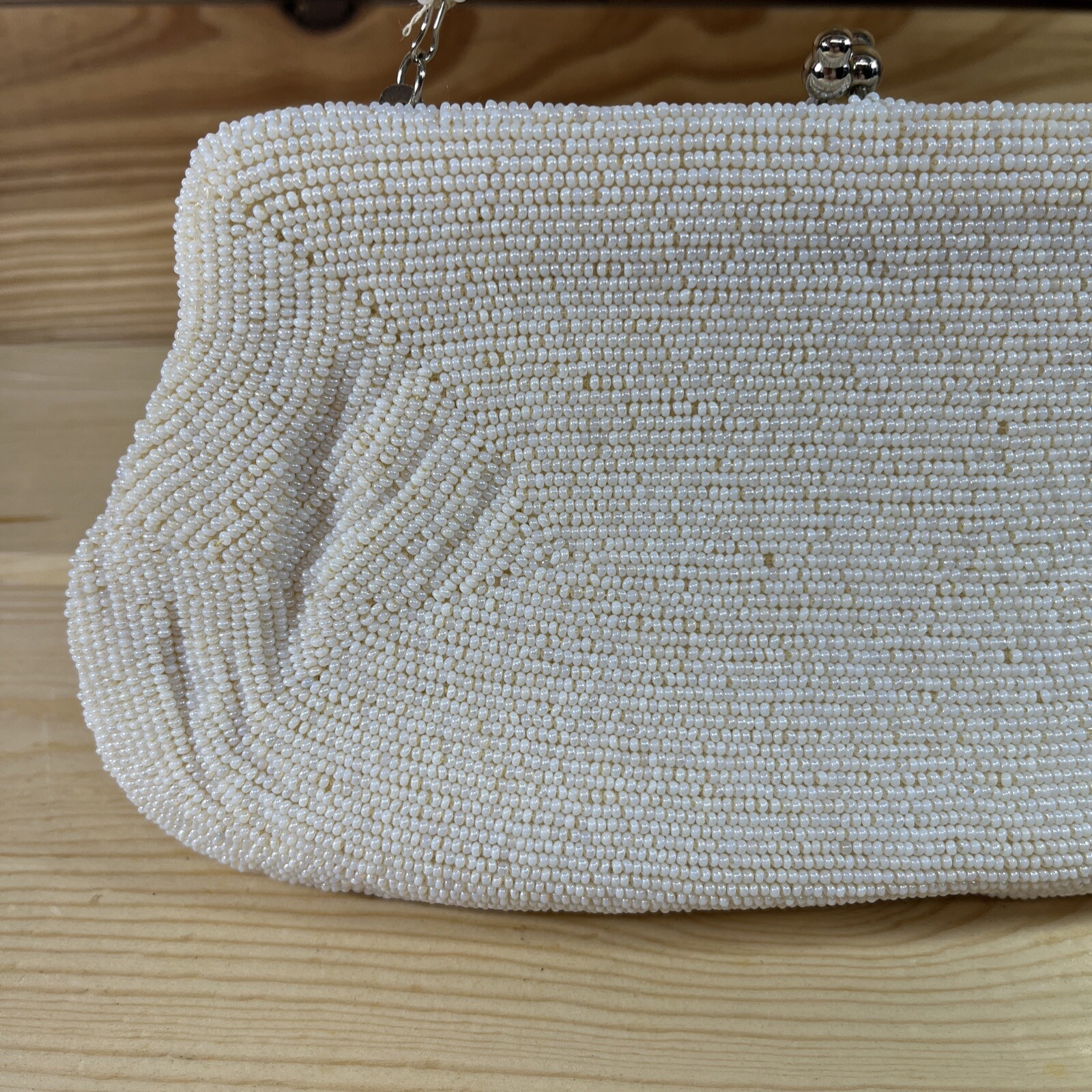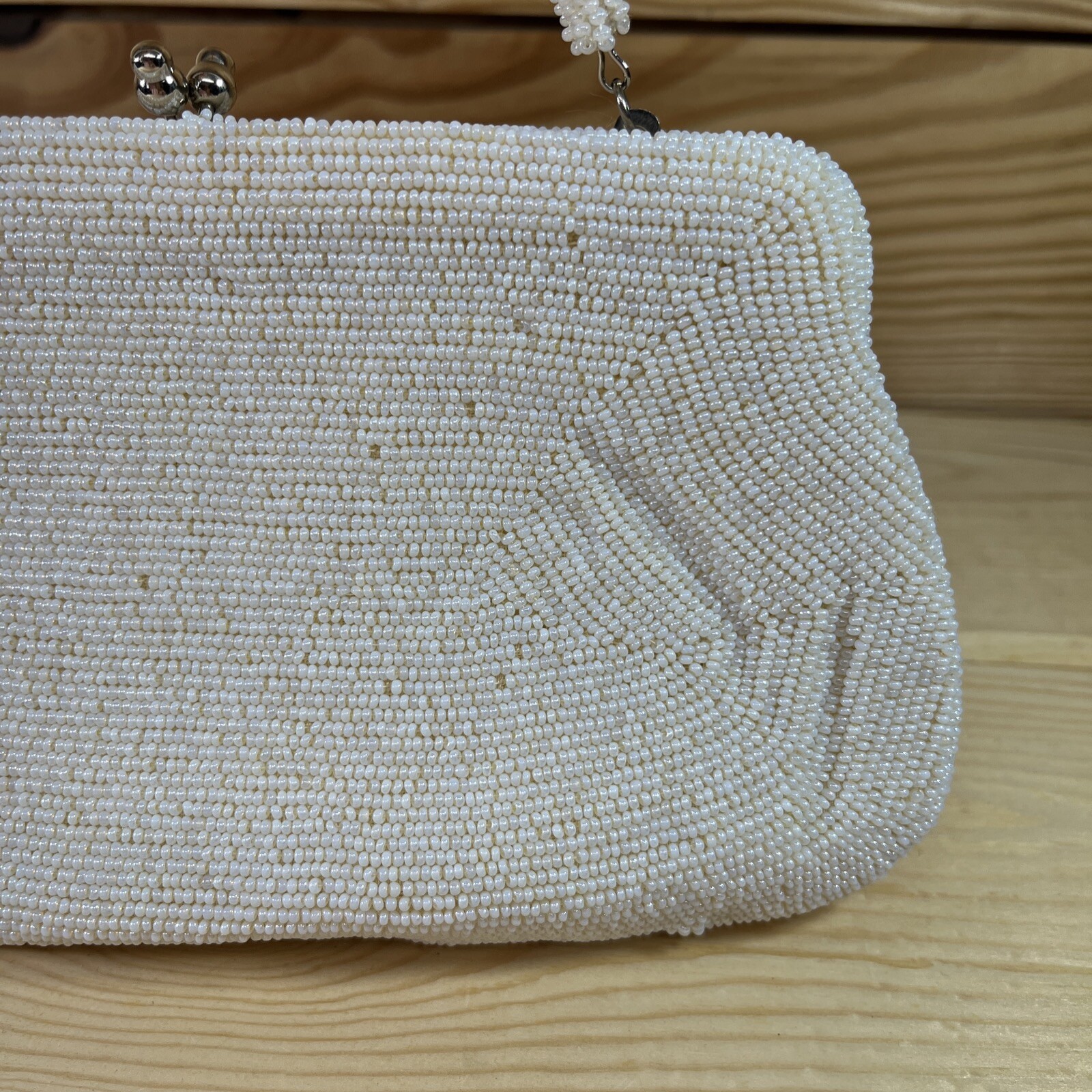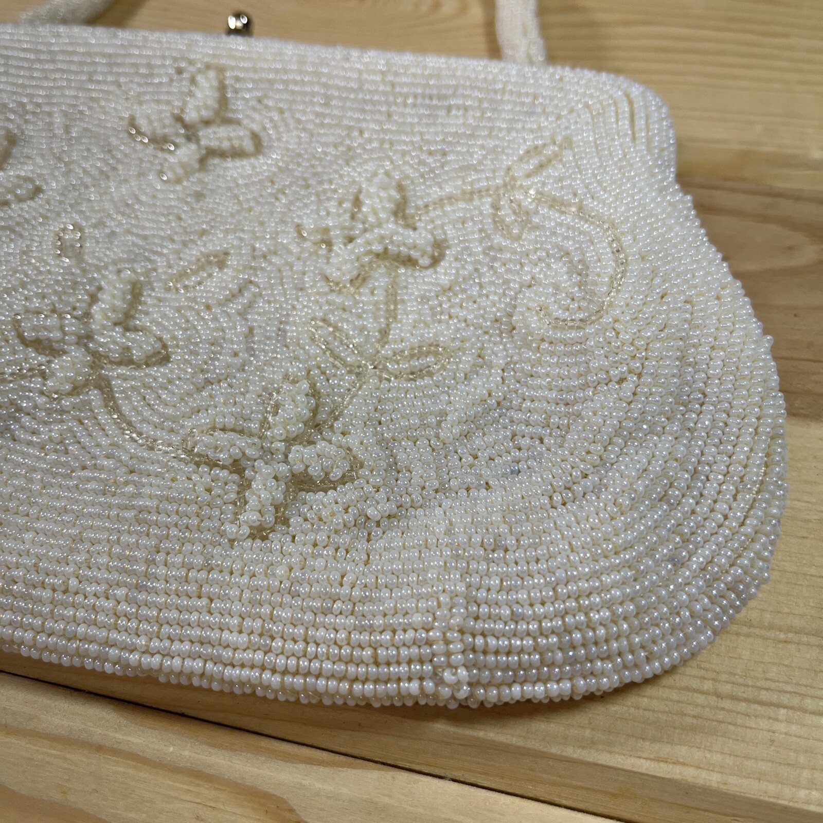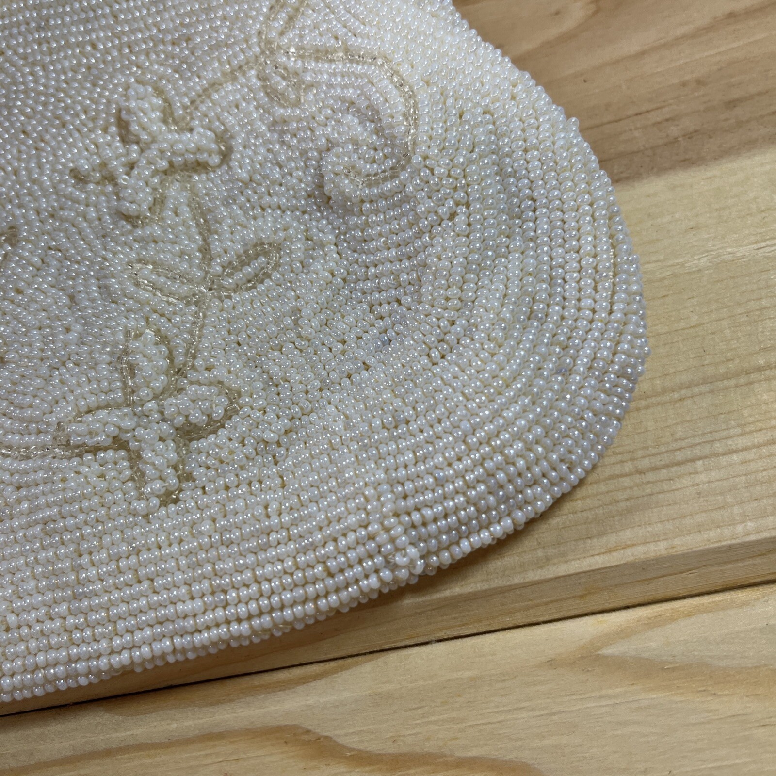 Vtg 50s 60s Floral Beaded Purse Cream Handbag Evening Ivory Clutch Japan 9x5