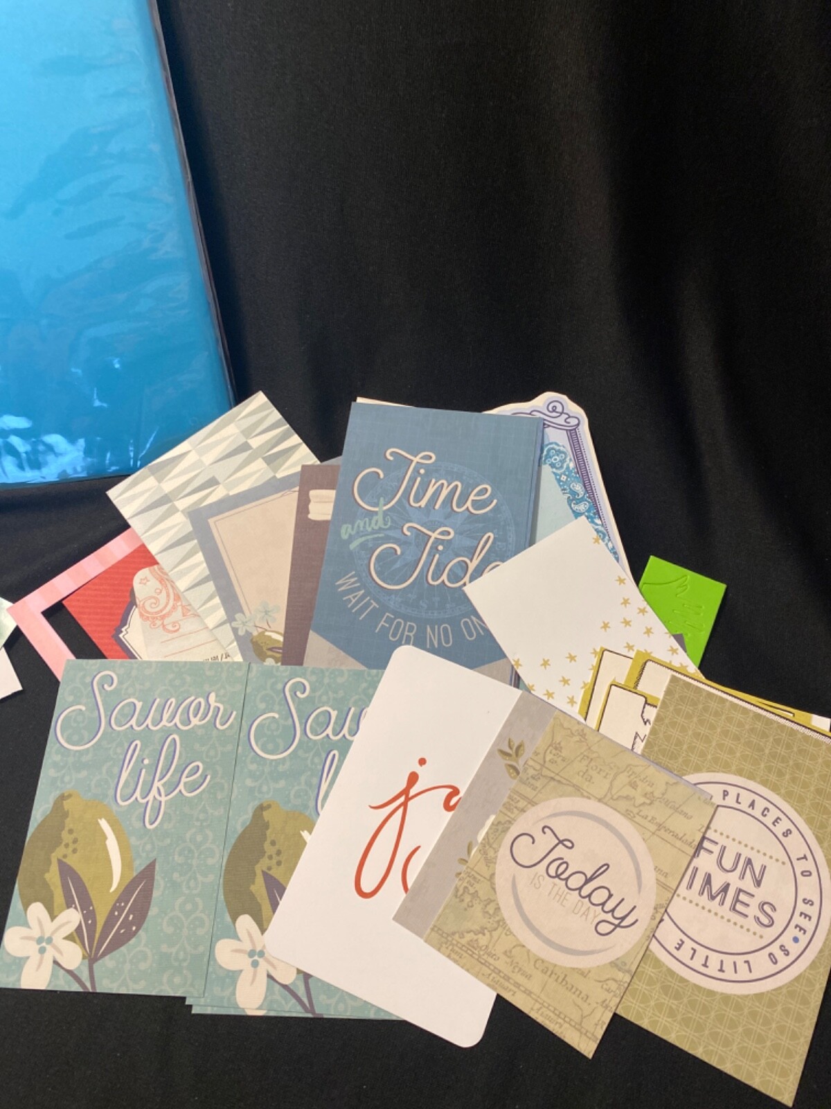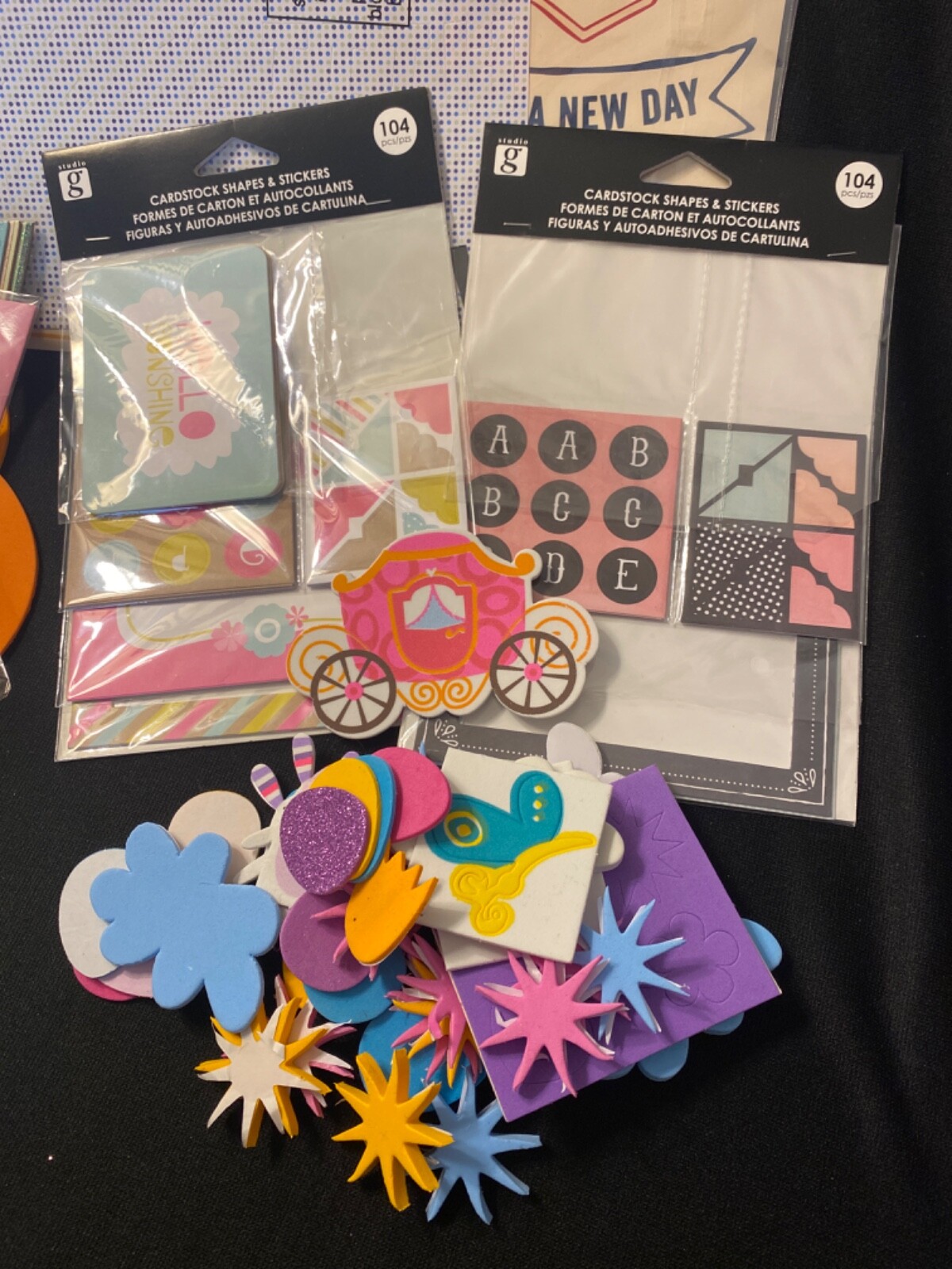 12 x 12 Colorb k Scrapbook W/ Large Lot Of Stickers/ Cards/ Foams /Ribbons