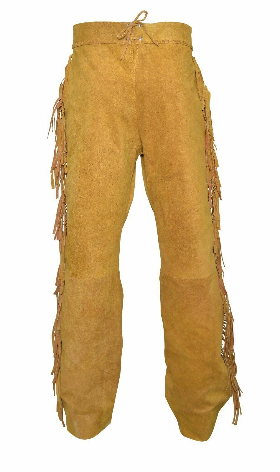 Men's Native American Tan Cowboy Suede Pant Hunting Buckskin Mountain Man