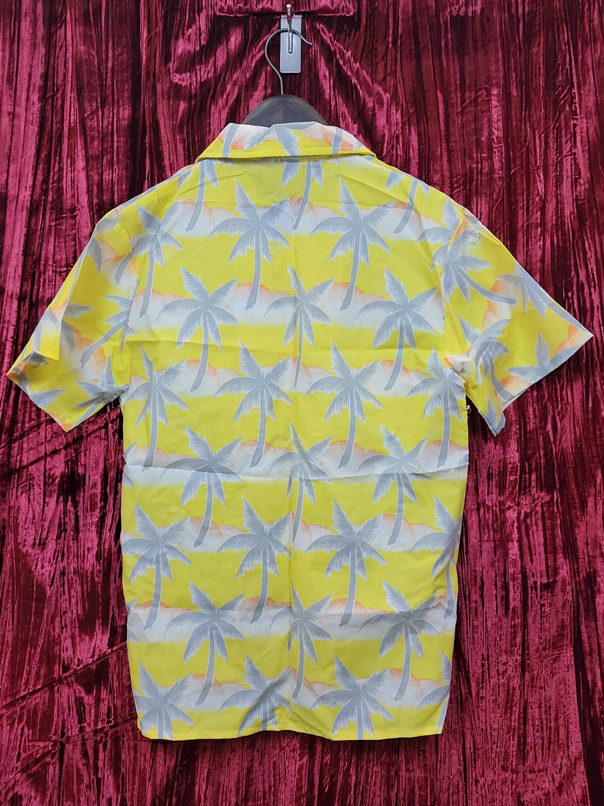 NOS Tropicana Hawaiian Shirt Vintage Yellow with Gray Palm Trees Men SIZE LARGE