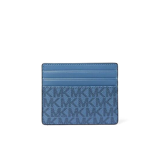 как выглядит New Michael Kors Cooper Tall Card Case Coated Canvas Denim Multi фото