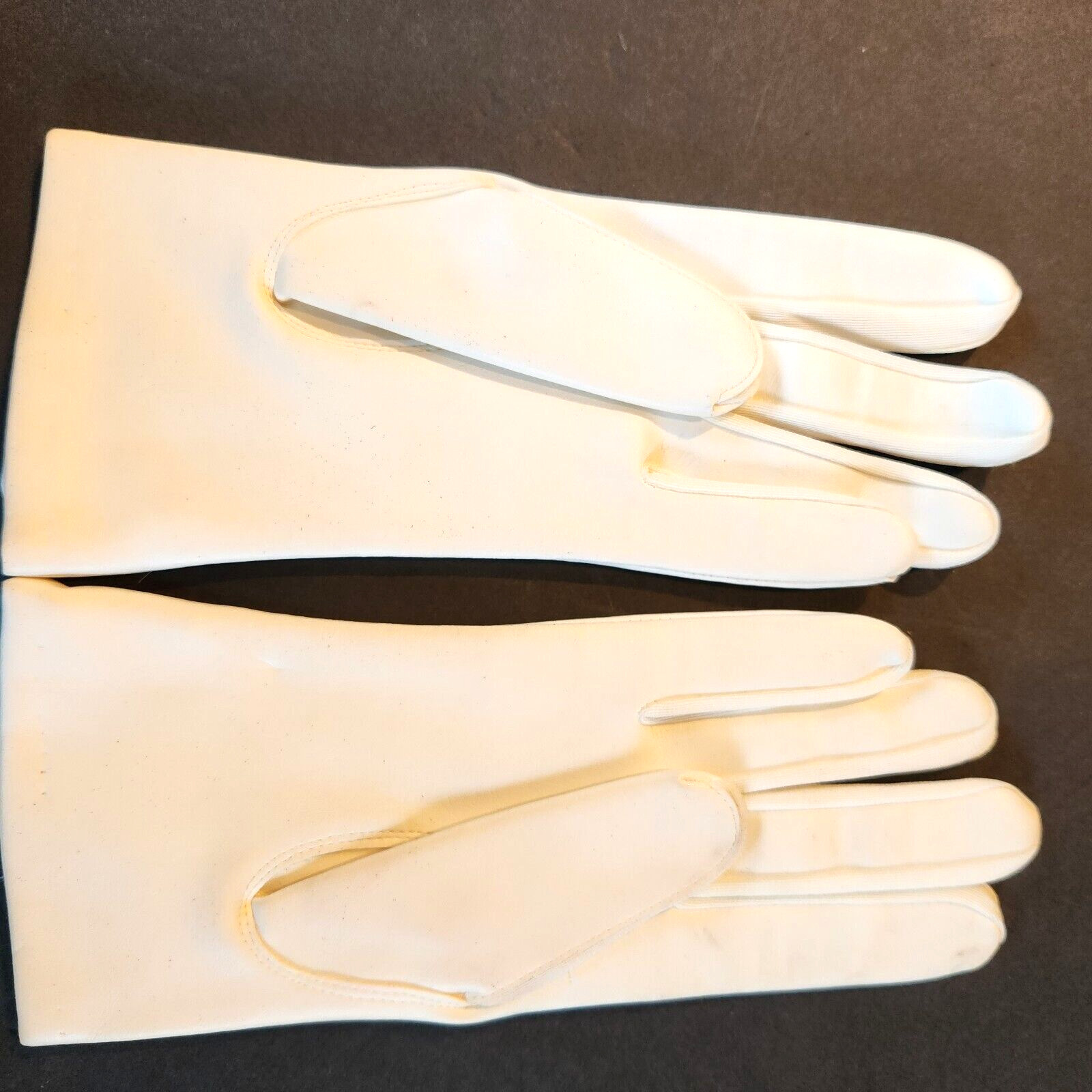 как выглядит Vtg Womens White Leatherette Gloves Lined Warm Button Accent Nylon Size L Japan фото