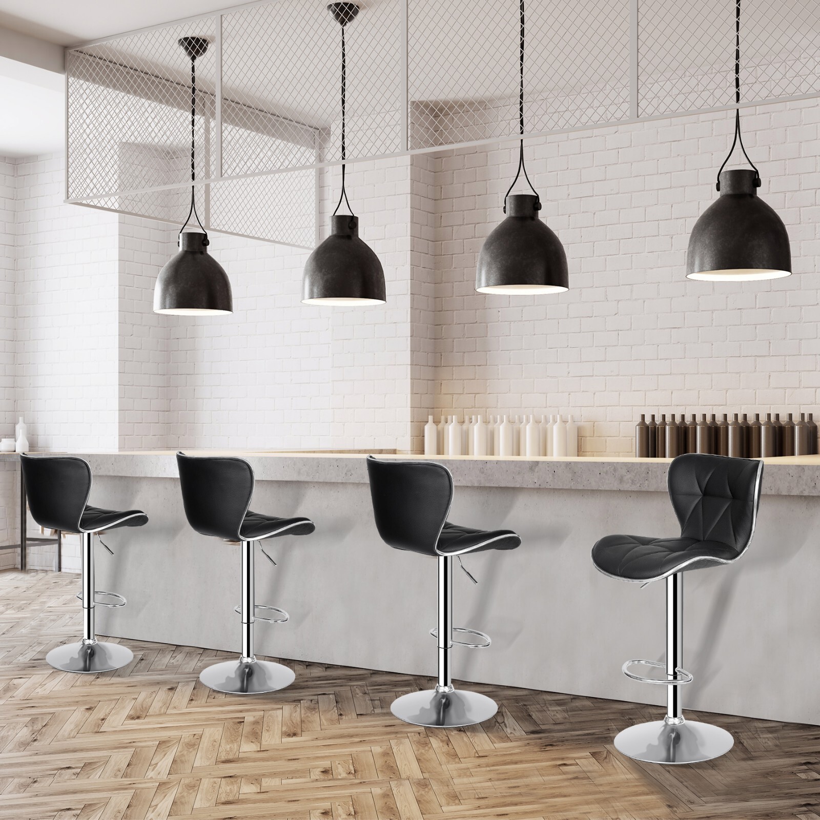 PU leather Bar Stools Set of 4 w/Shell Back Adjustable Height Steel Frame