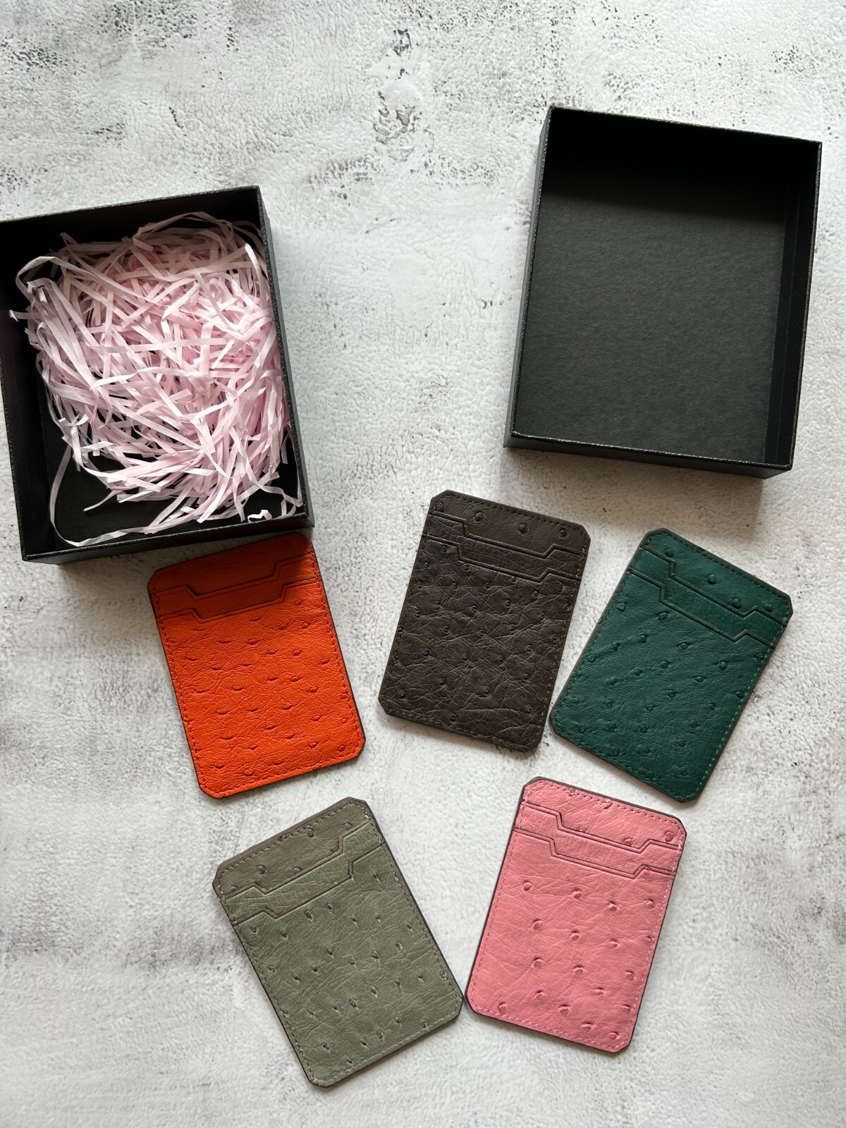 как выглядит Custom Handmade Authentic Ostrich Leather Flat Card Case In Dark Brown Color фото