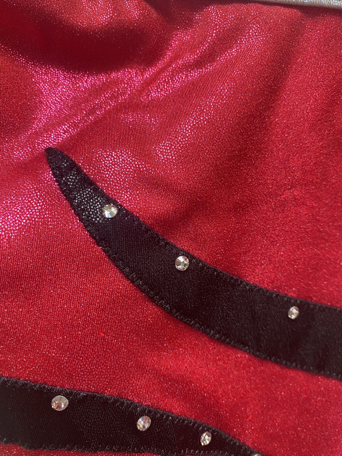 GK ELITE Leotard GYMNASTICS Rhinestone BETH Shimmer RED Black SWOOSH Strappy CM