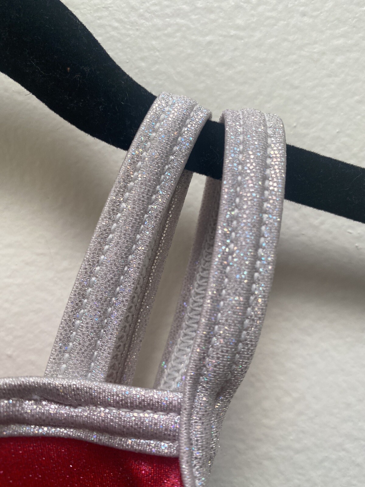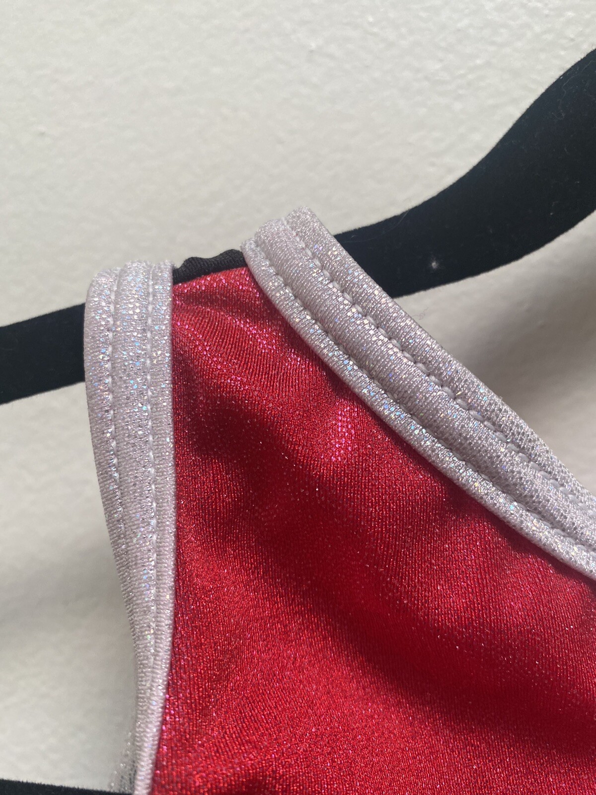 как выглядит GK ELITE Leotard GYMNASTICS Rhinestone BETH Shimmer RED Black SWOOSH Strappy CM фото