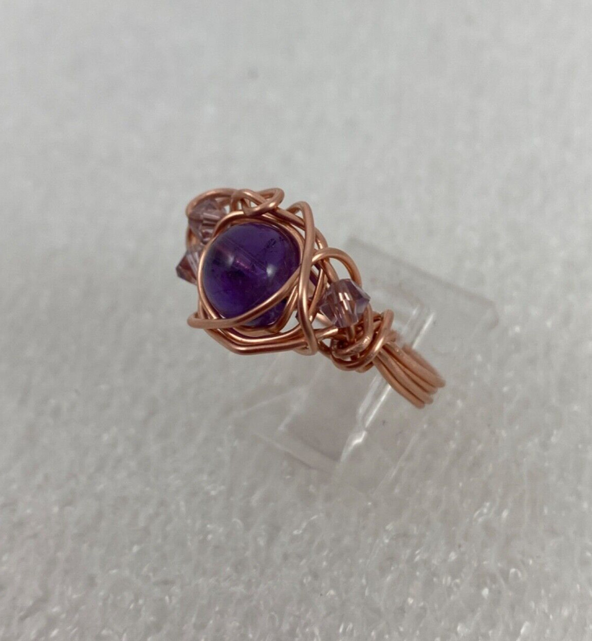 Handmade Copper Wire Wrap Amethyst Ring Size 9 317