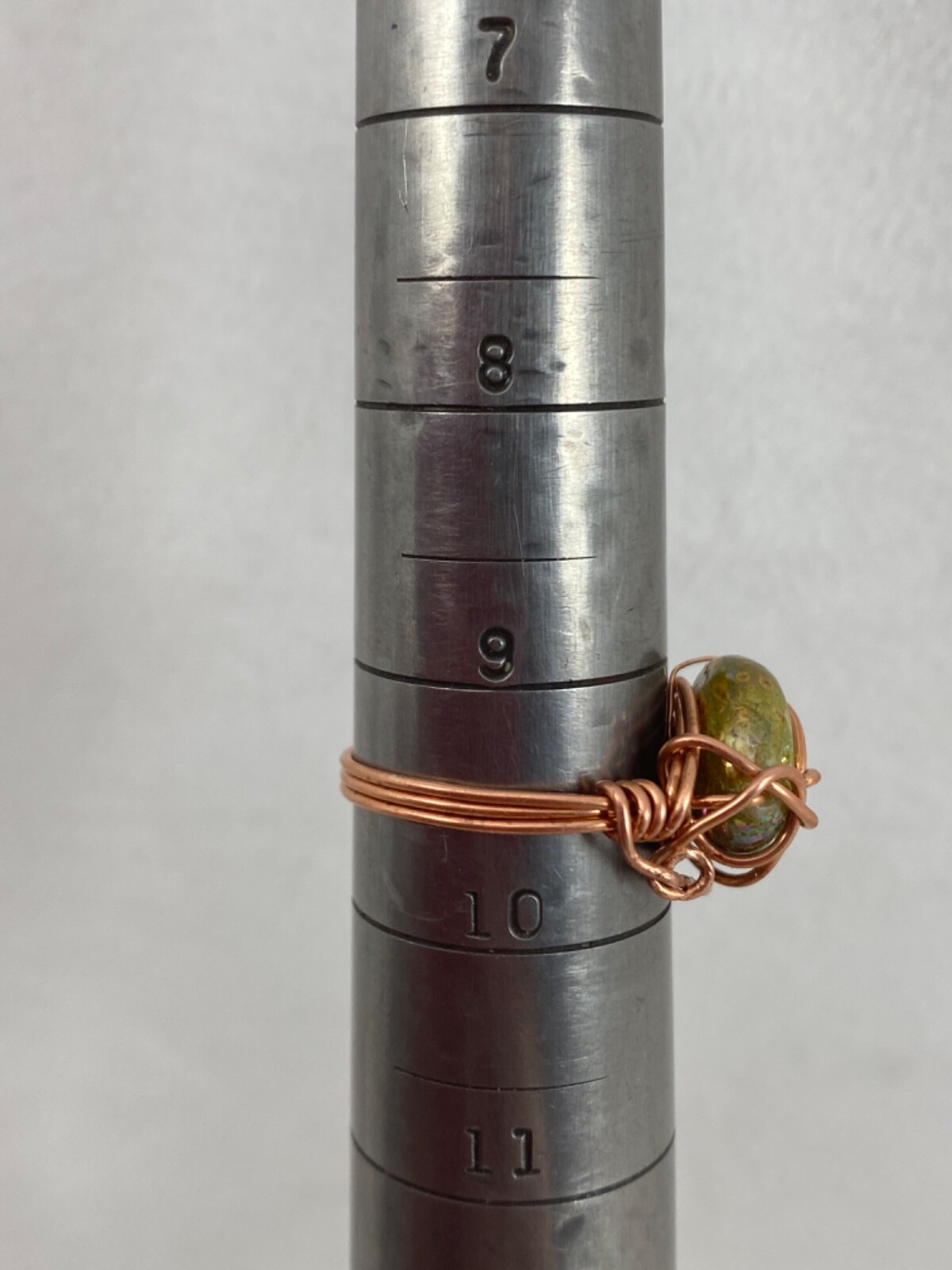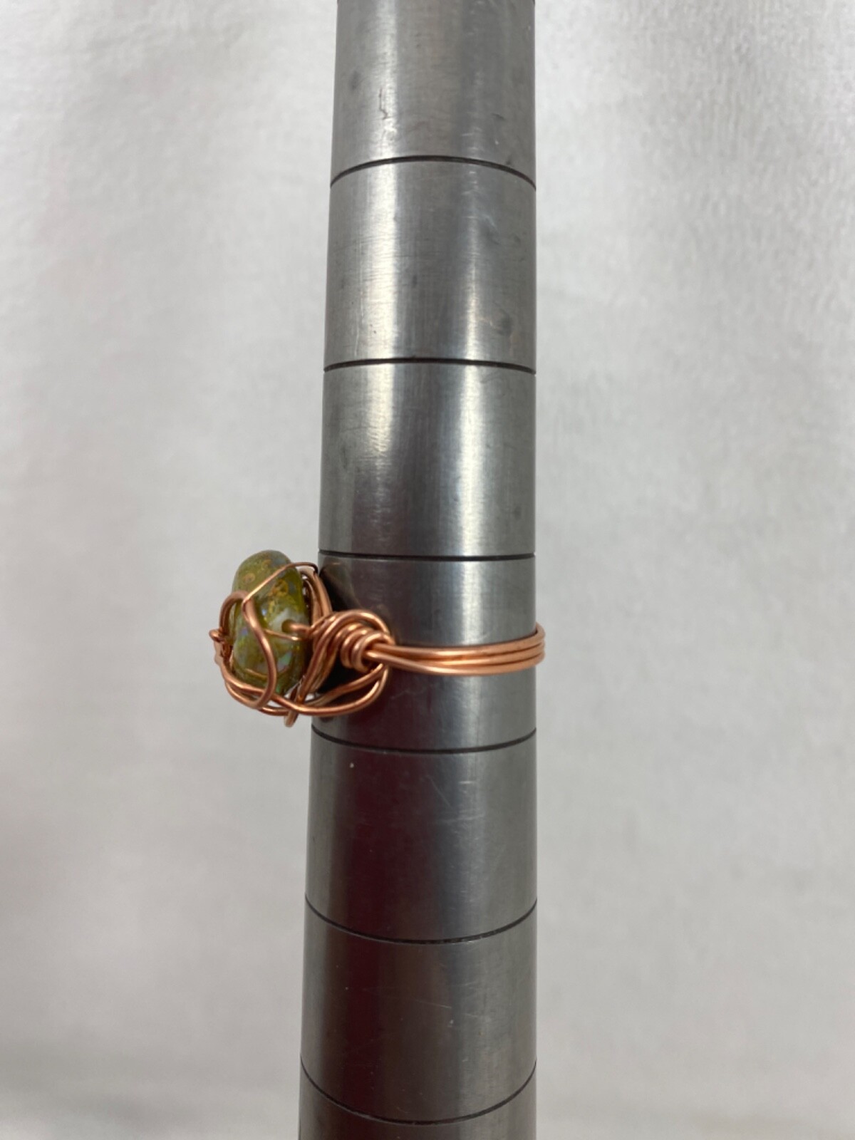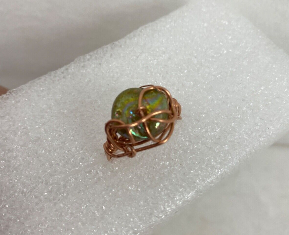 Copper Wire Wrap Iridescent Green Mother of Pearl Ring Size 9 1/2 321
