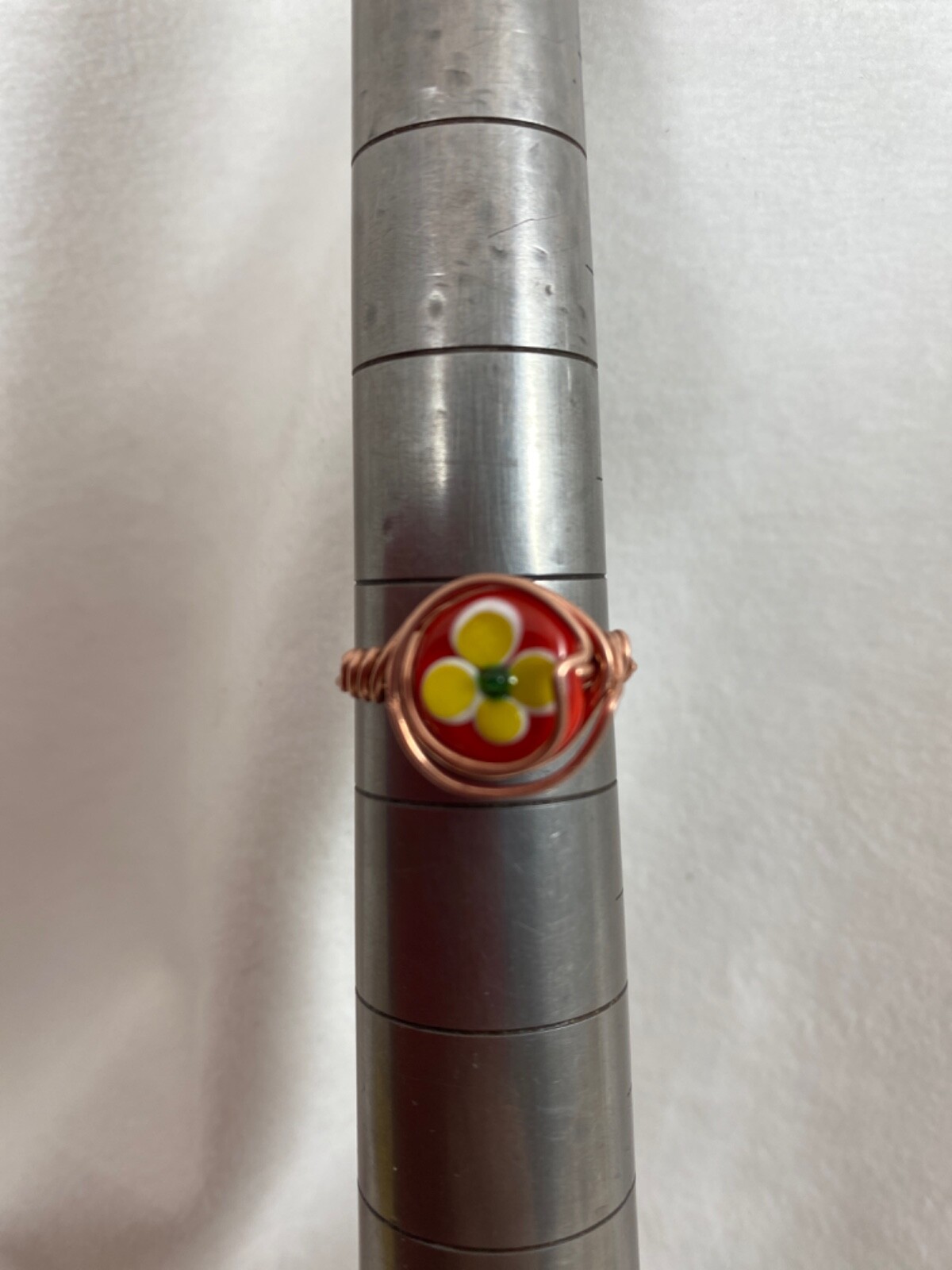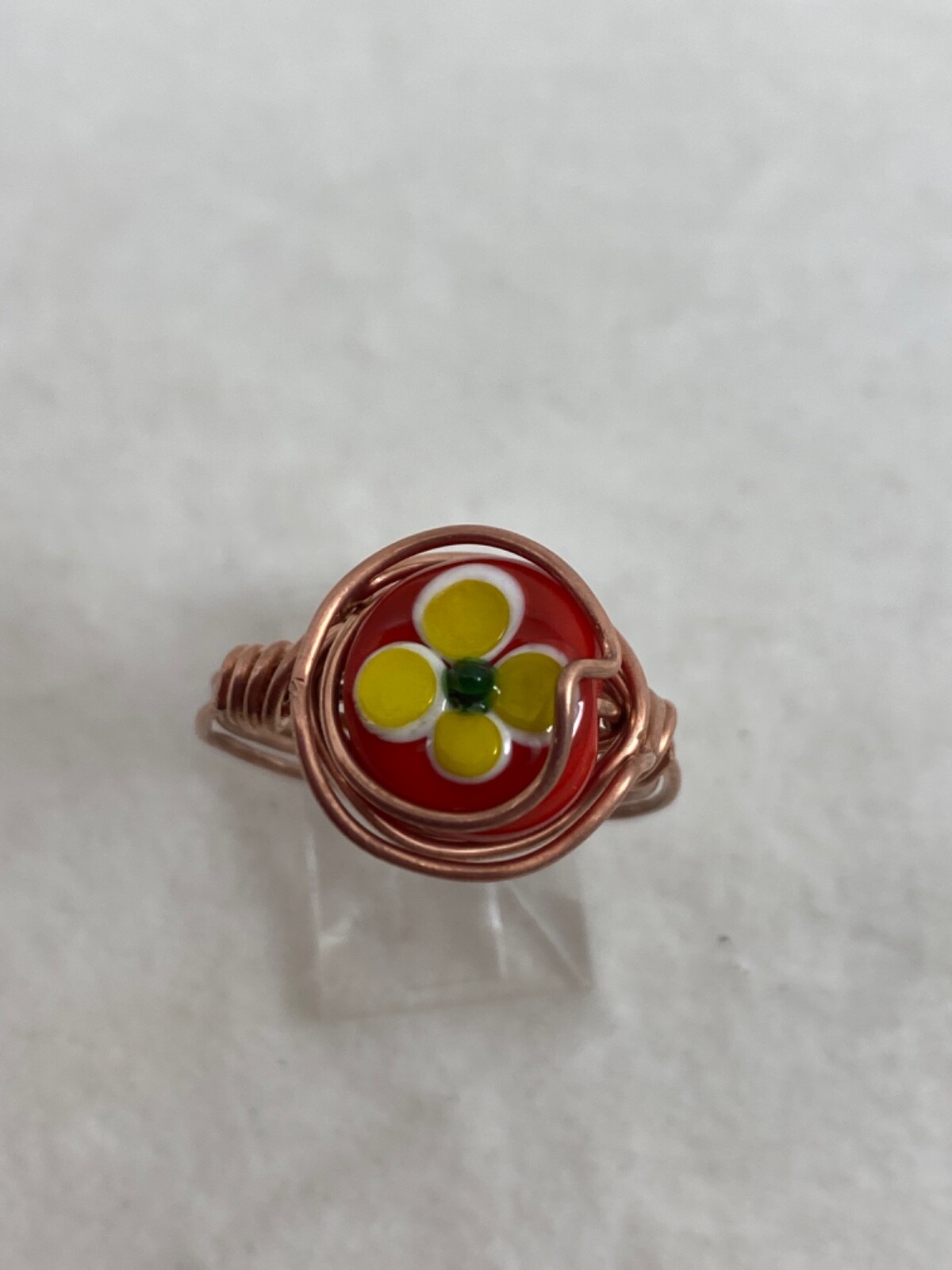 Handmade Copper Wire Wrap Red Glass Bead Rings Size 9 1/2 190