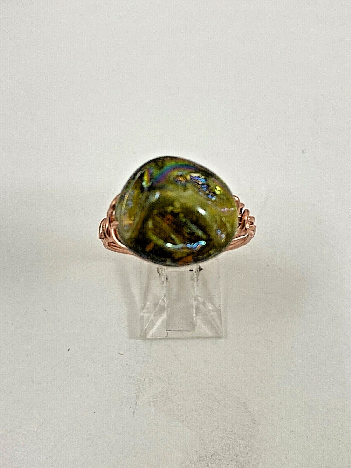 как выглядит Handmade Copper Wrap Lustrous Green Mother Of Pearl Ring Size 11 1/2 17 фото
