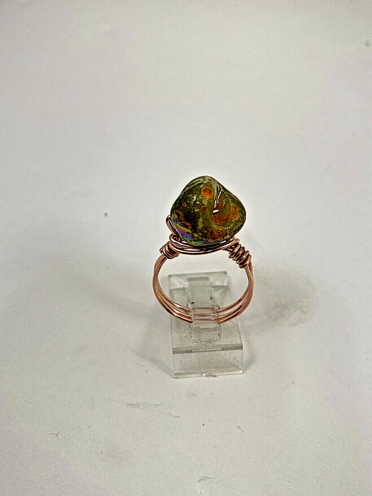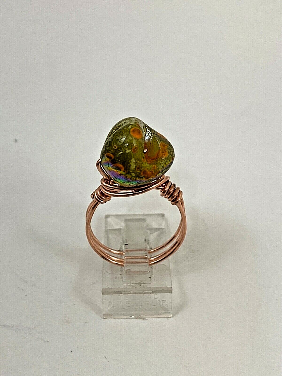 как выглядит Handmade Copper Wrap Lustrous Green Mother Of Pearl Ring Size 8 18 фото