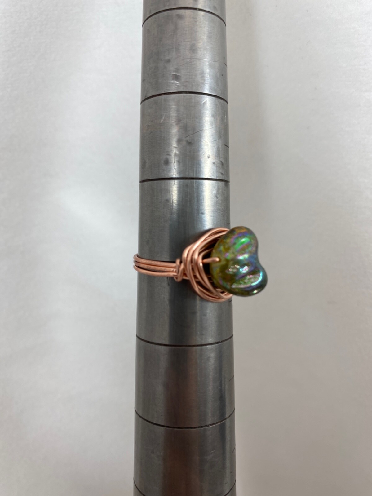 Handmade Copper Wrap Lustrous Green Mother Of Pearl Ring Size 9 10