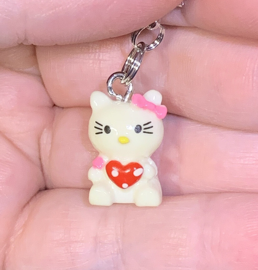 • Silver Hello Kitty Charm Zipper Pull Keychain Add On Clip
