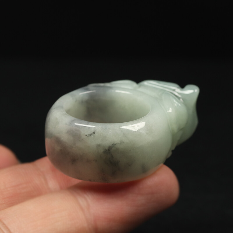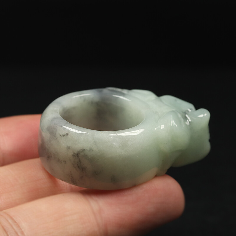 как выглядит Size 11.5 Certified Grade A 100 Natural Green Jadeite Jade Ring Pixiu 14795 фото