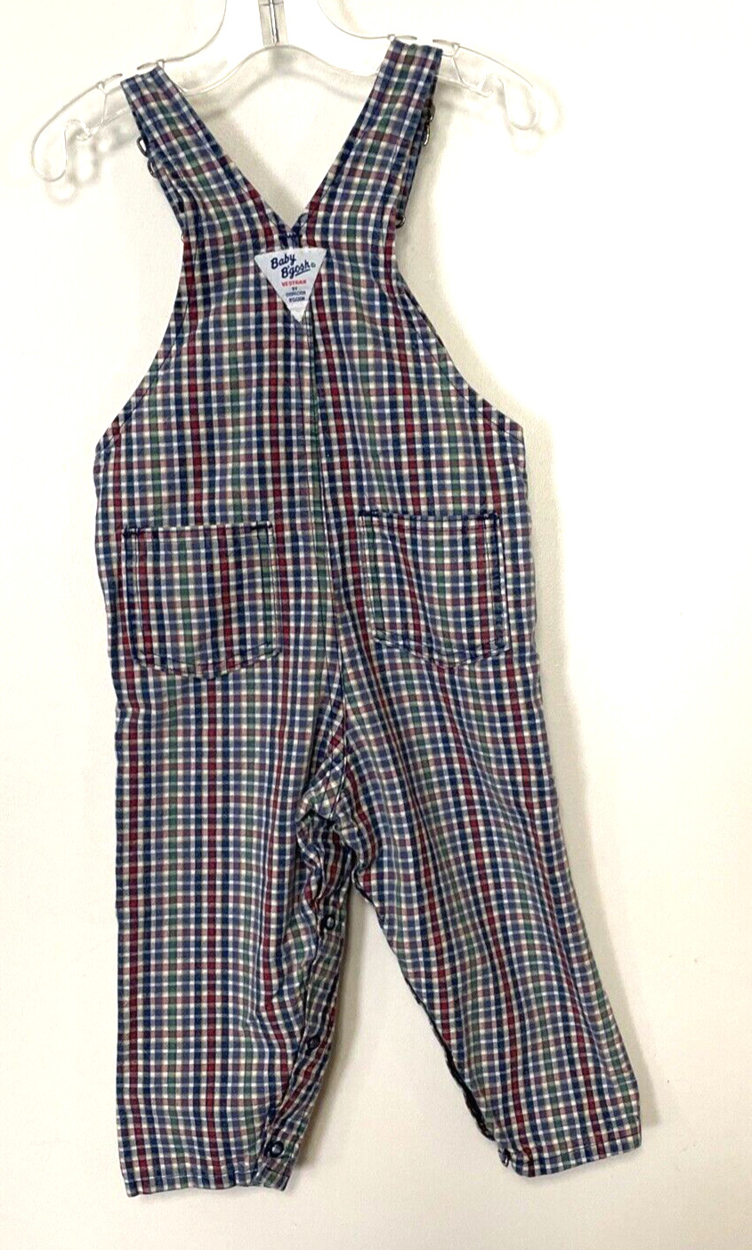 Vintage OshKosh Vestbak Blue, Green Red Plaid Overalls Size 24 Mth Baby B'gosh