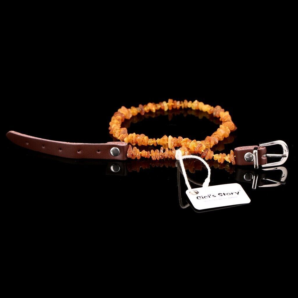 Amber Collar for Dogs and Cats with Adjustable Leather Strap