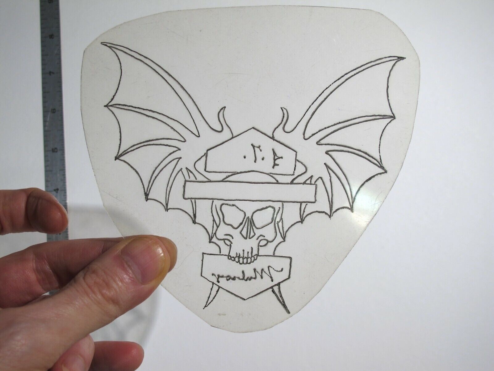 vtg 1960s 1970s Tattoo stencil Dragon Wings Skull Shield signed HAR4