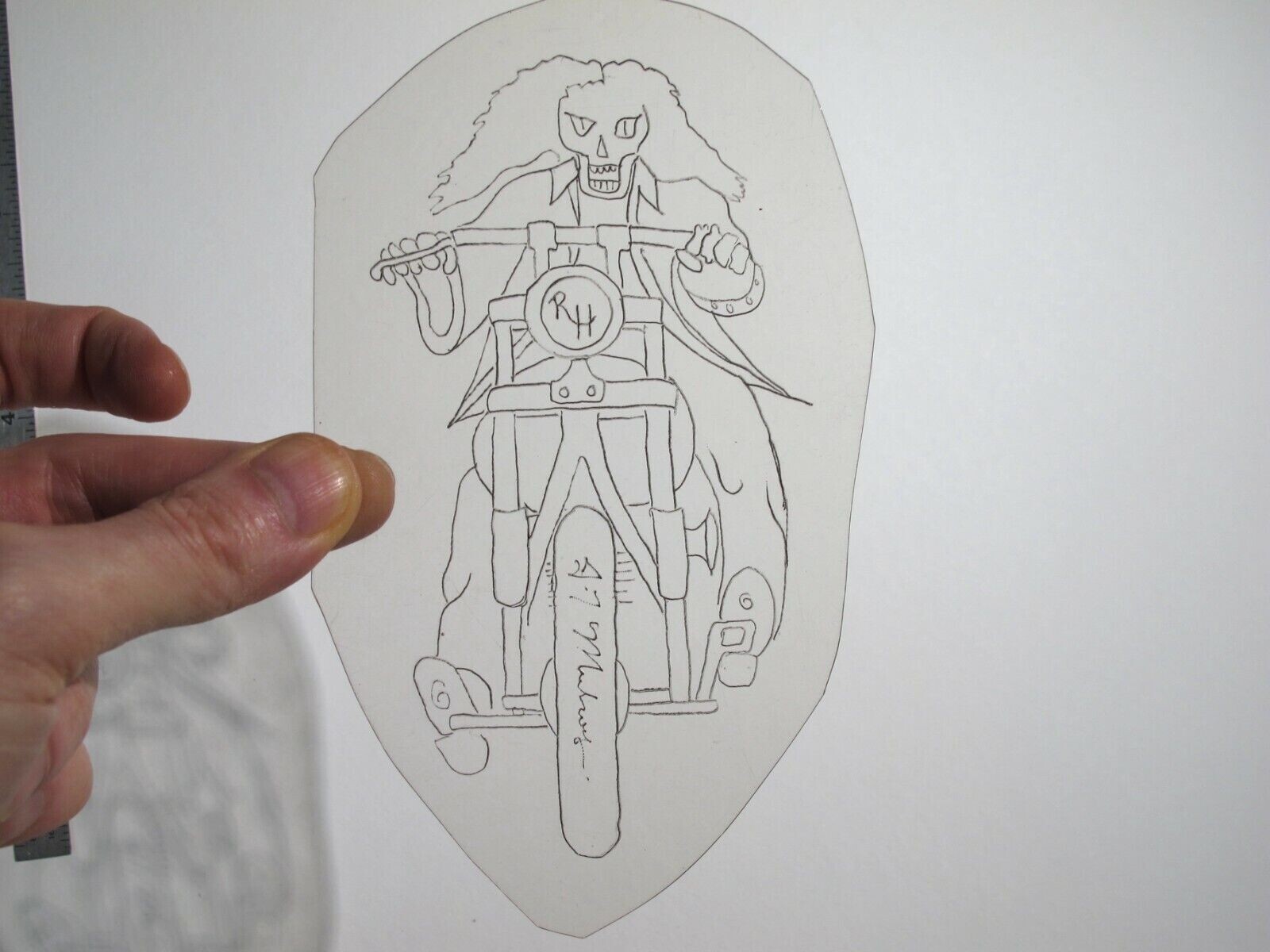 vtg 1960s 1970s Tattoo acetate stencil Ghost Chopper Rider signed HAR4