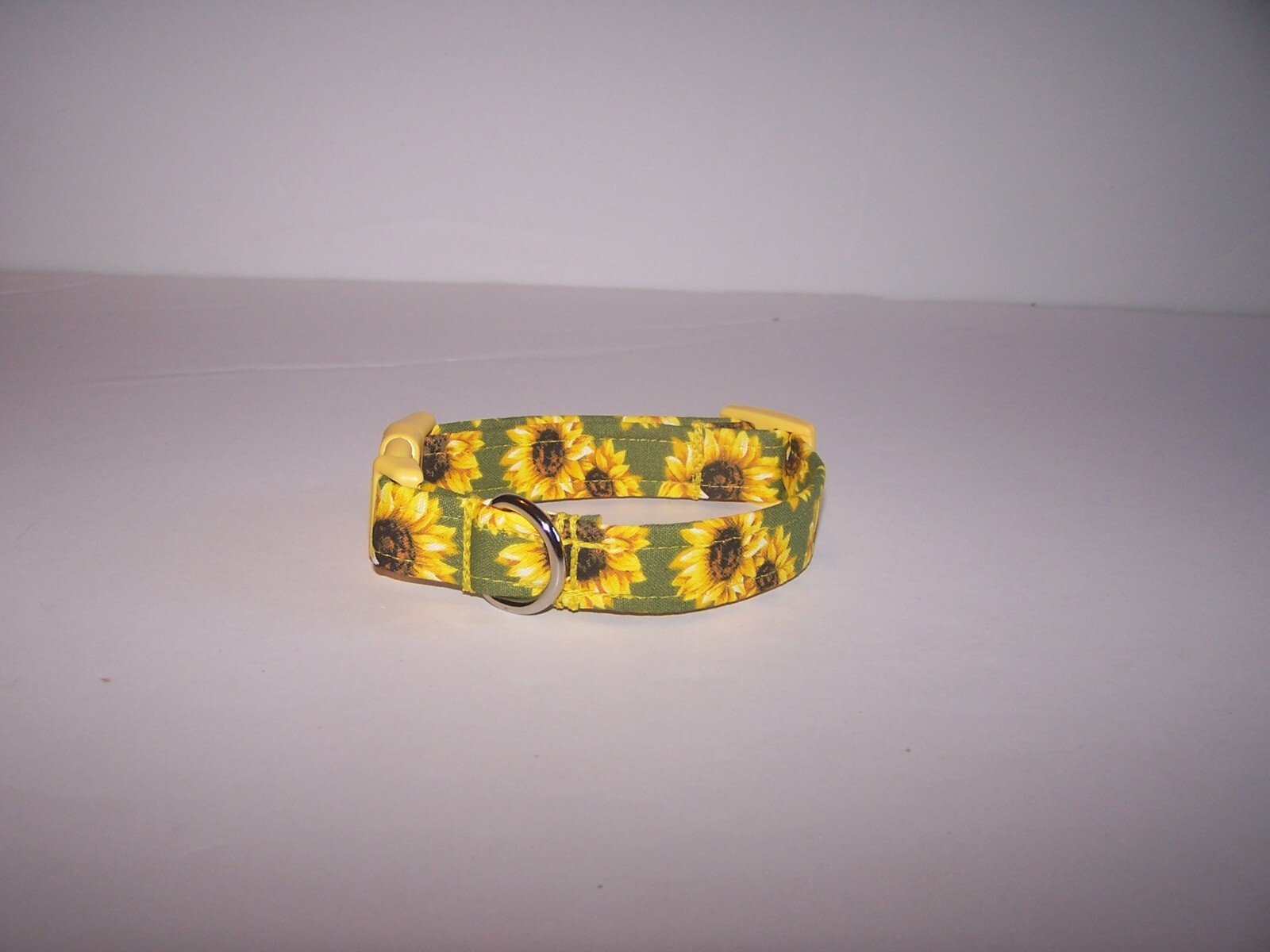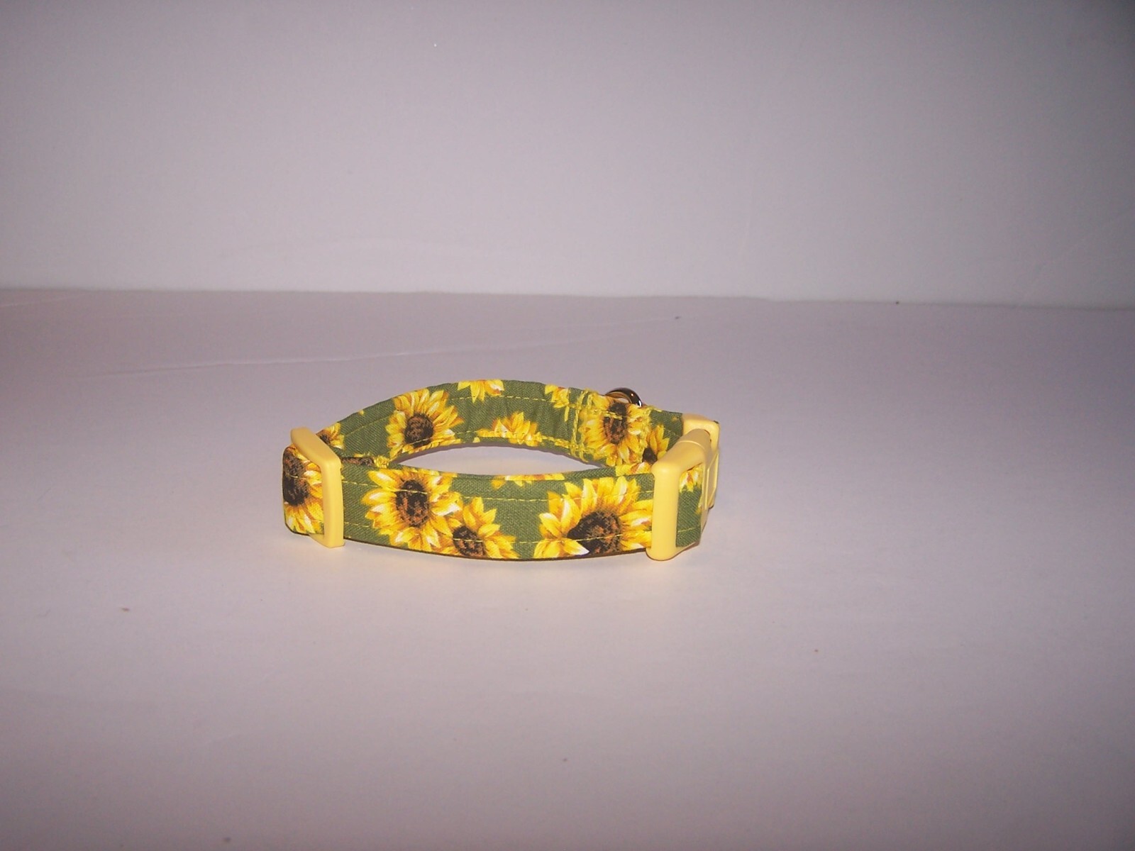Wet Nose Designs Sunflower Season Dog Collar Olive Fall Autumn Colored Buckle