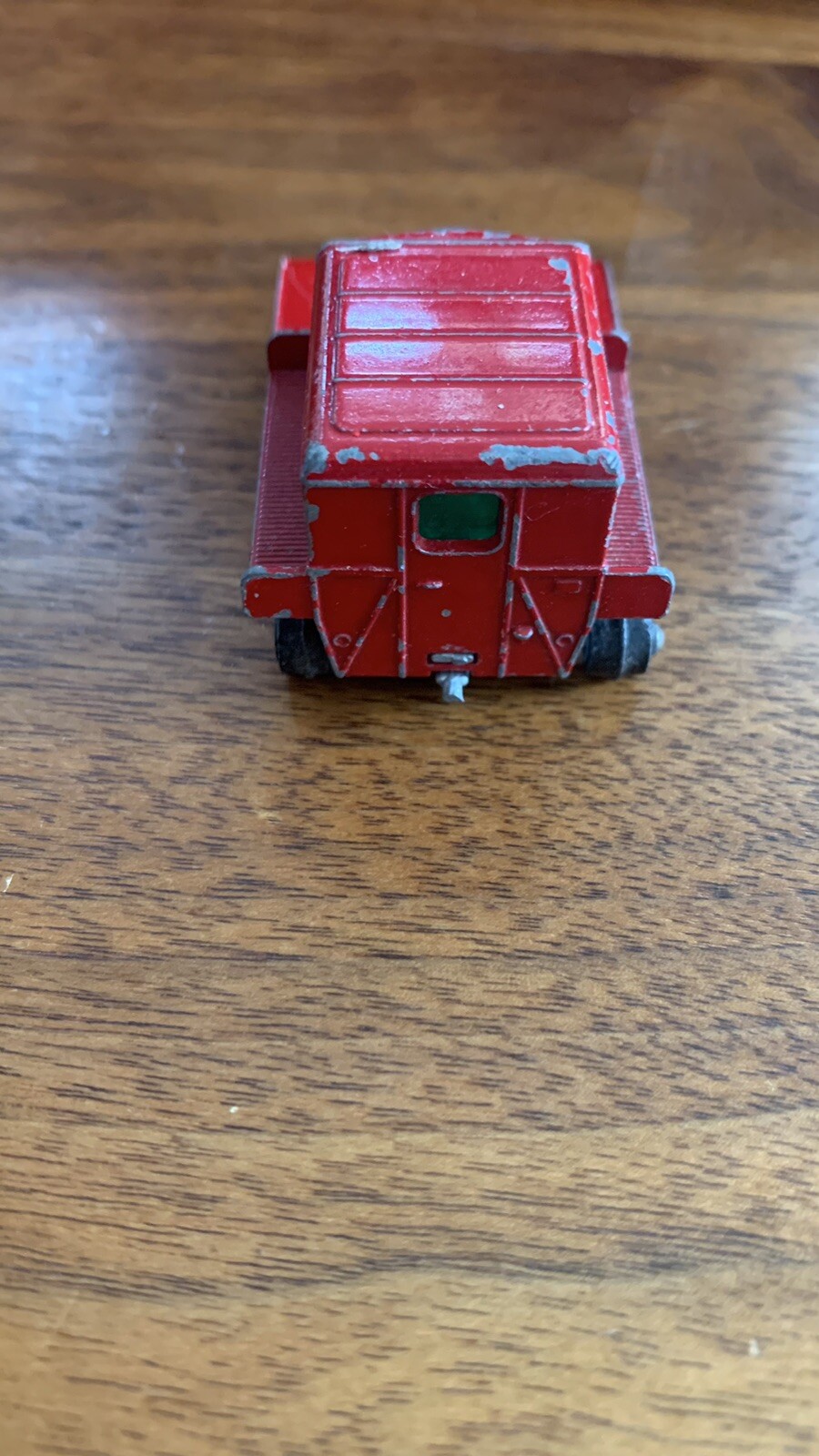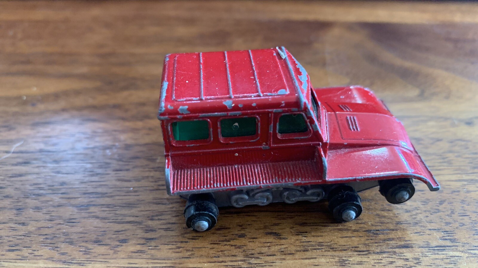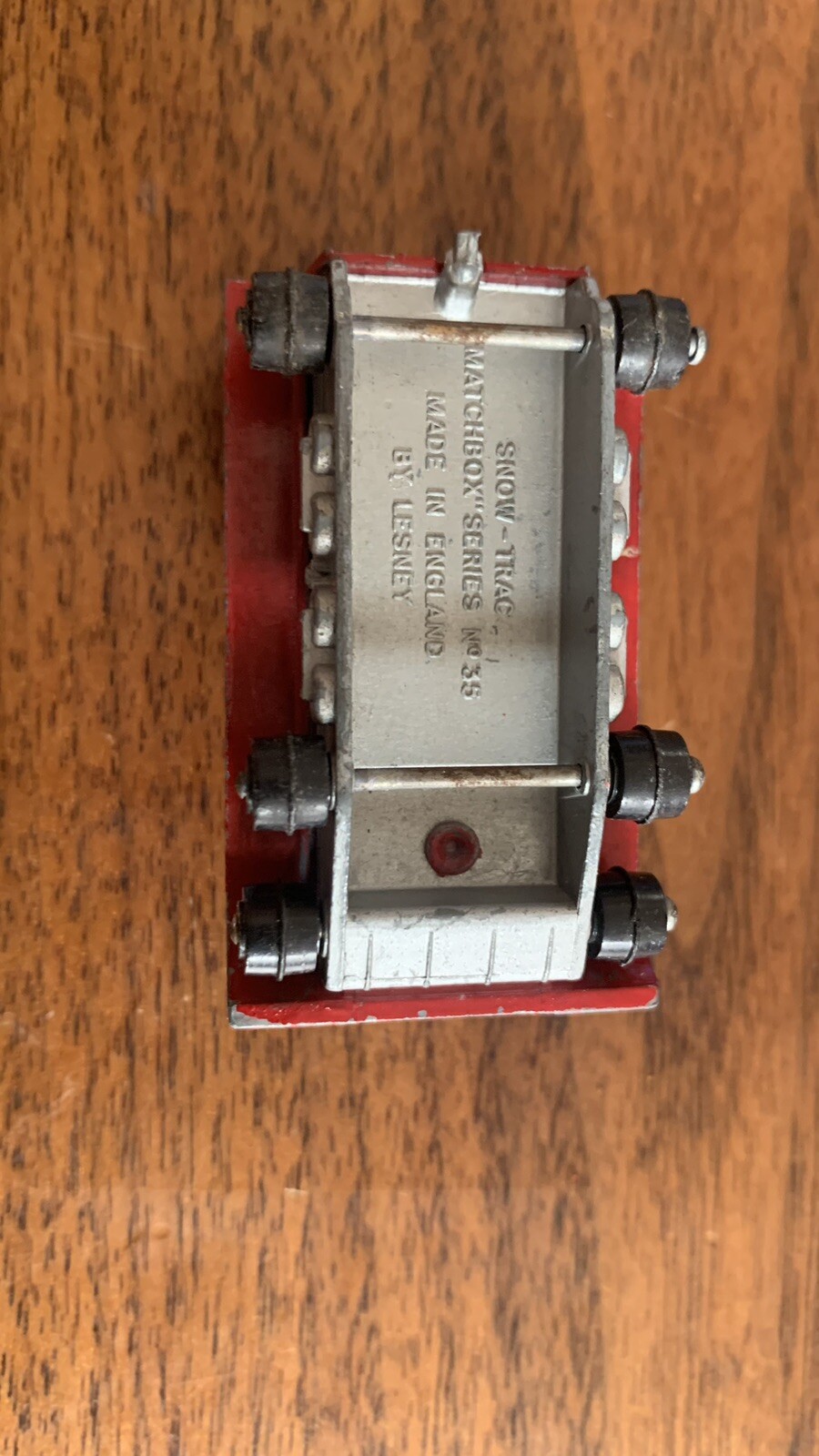 как выглядит Vintage Matchbox Lesney No. 35 Snow-Trac Red W/ Green Windshield Missing Tracks фото