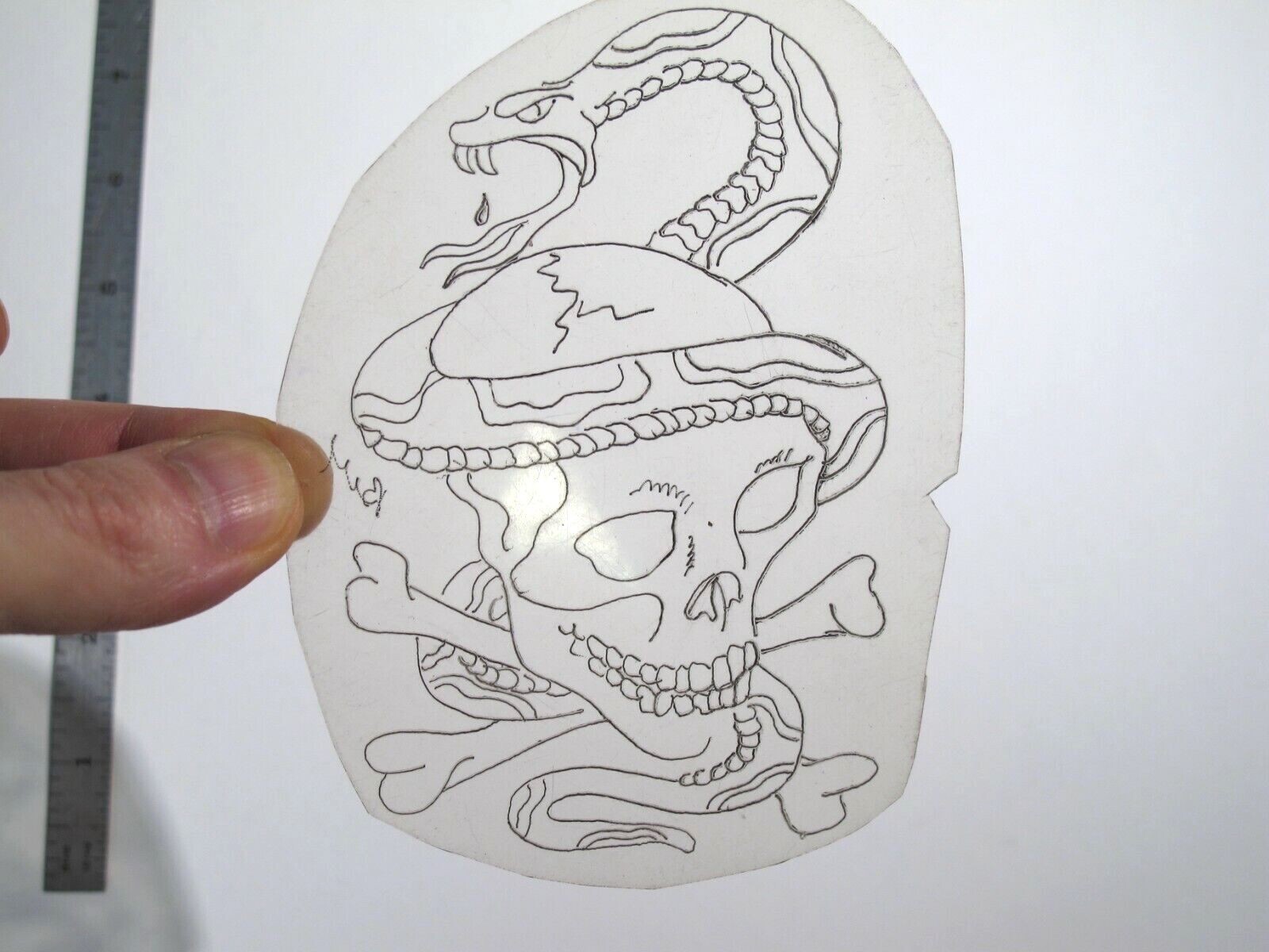 vtg 1960s 1970s Tattoo acetate stencil Snake Wrapping Skull signed SK5