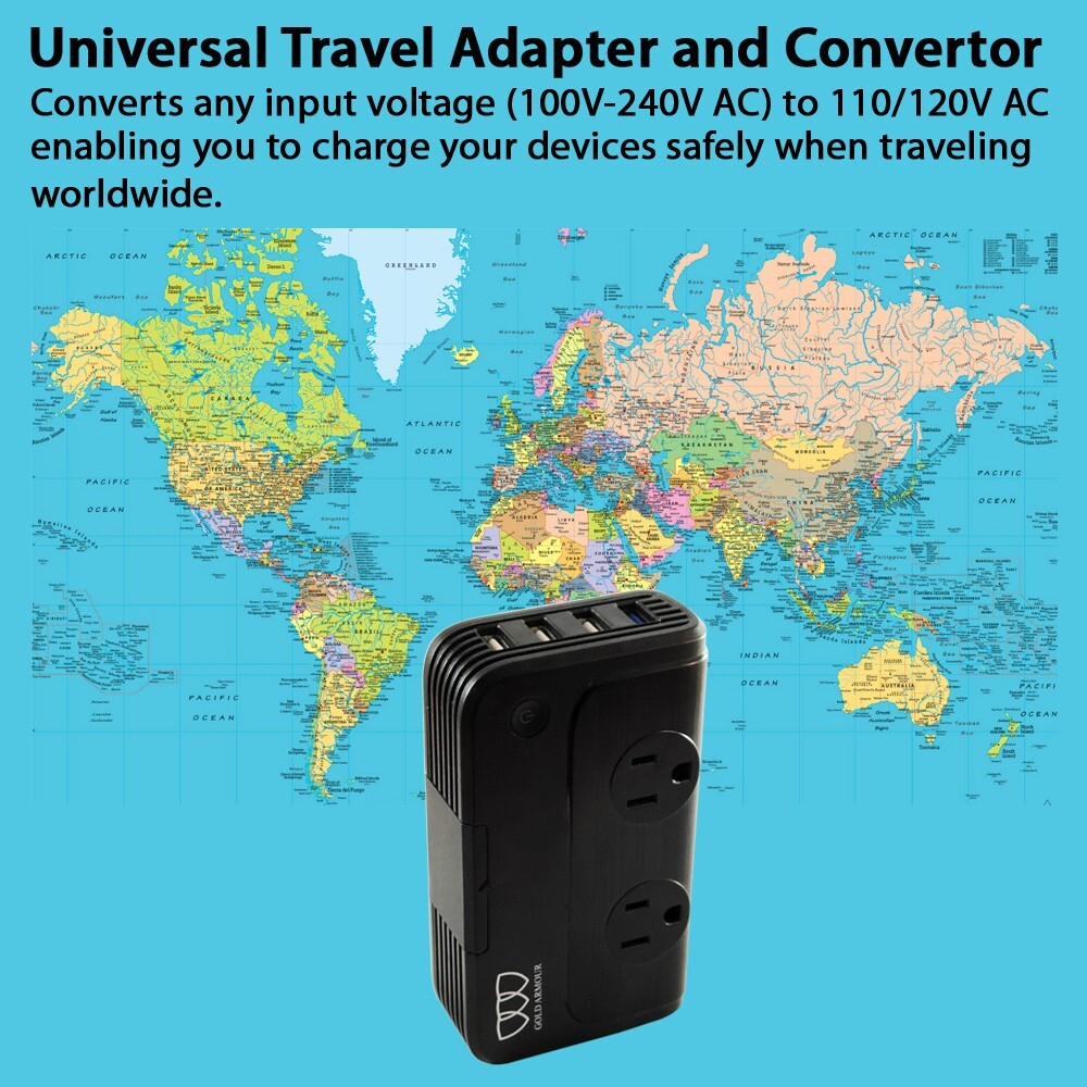 220V to 110V Step Down Voltage Converter 2-Outlet 4 USB Travel Adapter Converter