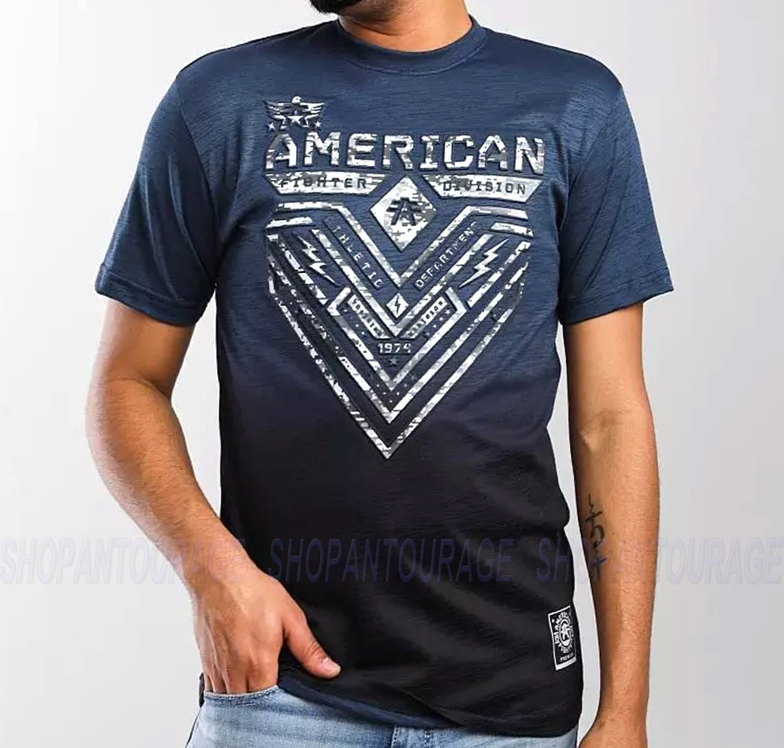American Fighter New Short Sleeve Athletic Blue Graphic Sport T-shirt for Men