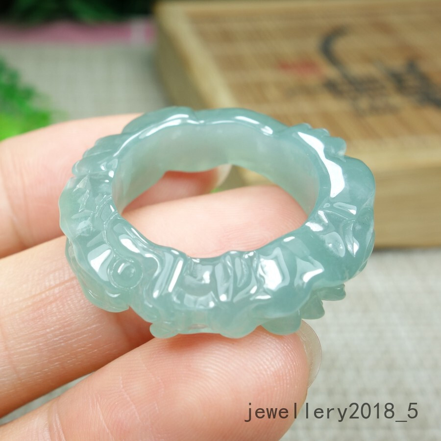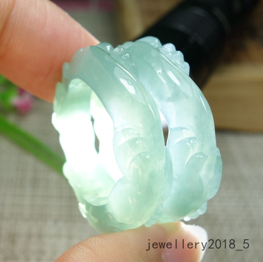 Certified Icy Green Burma 100 Natural A jadeite Jade Dragon Ring USA.11