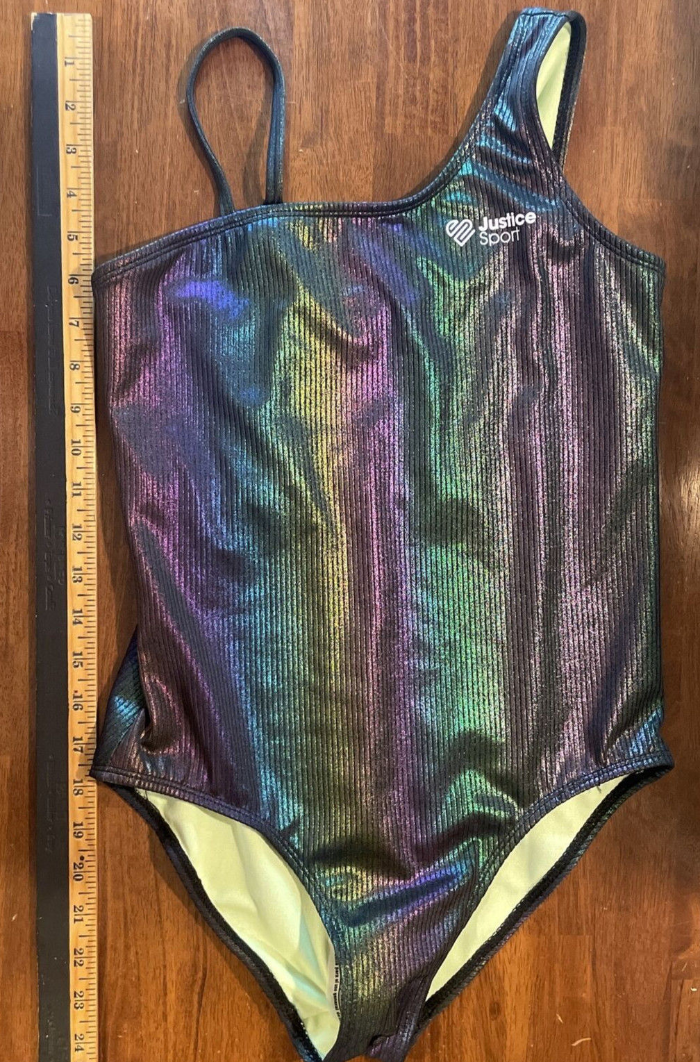 как выглядит NWOT Justice Sport Girls One Piece Swimsuit Gray Iridescent Size XL 16/18 фото