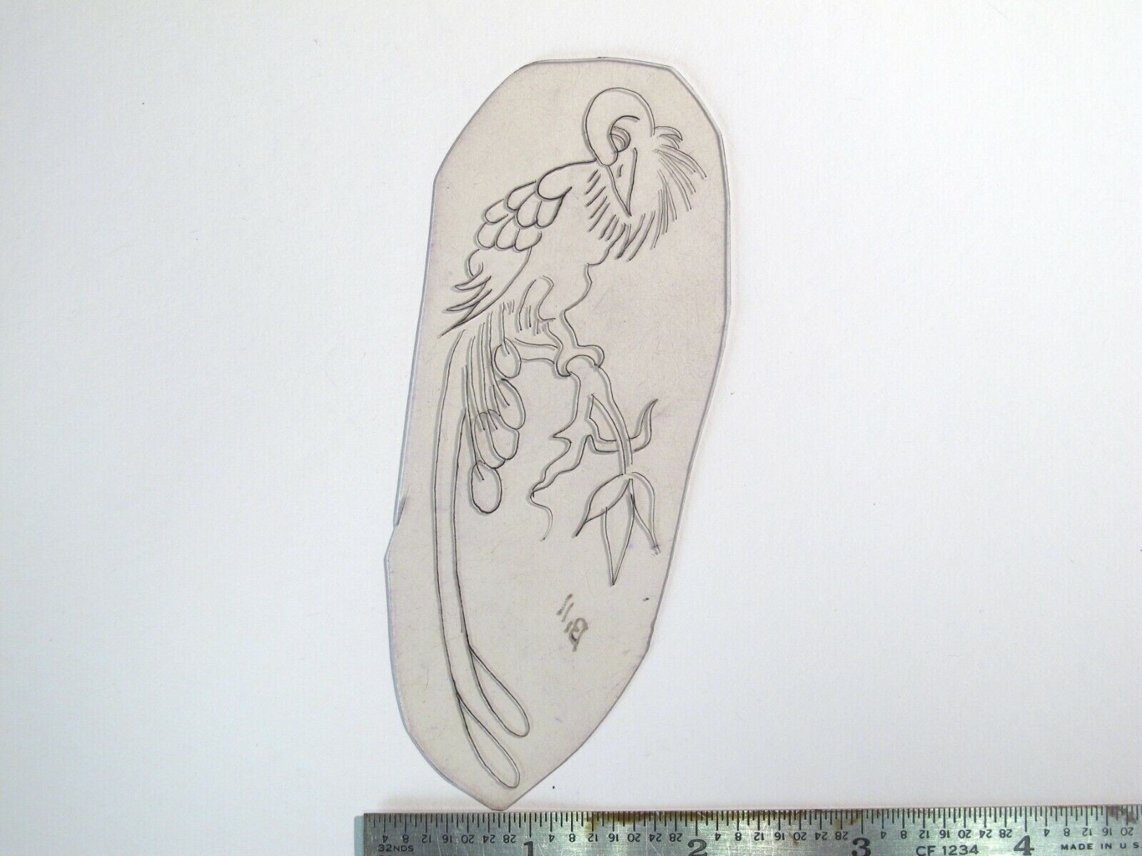 vtg 1960s 1970s Tattoo Flash acetate stencil Peacock on branch signed BR1