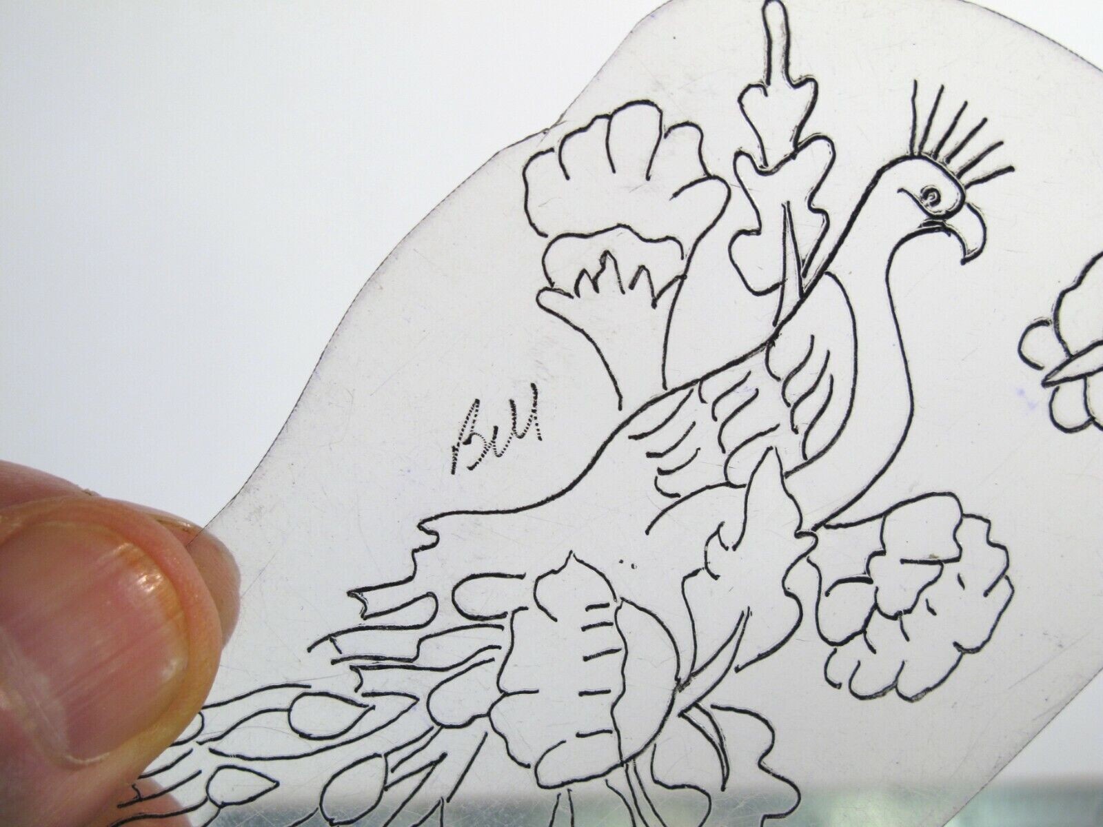 vtg 1960s 1970s Tattoo Flash acetate stencil Peacock and Butterfly signed BR1