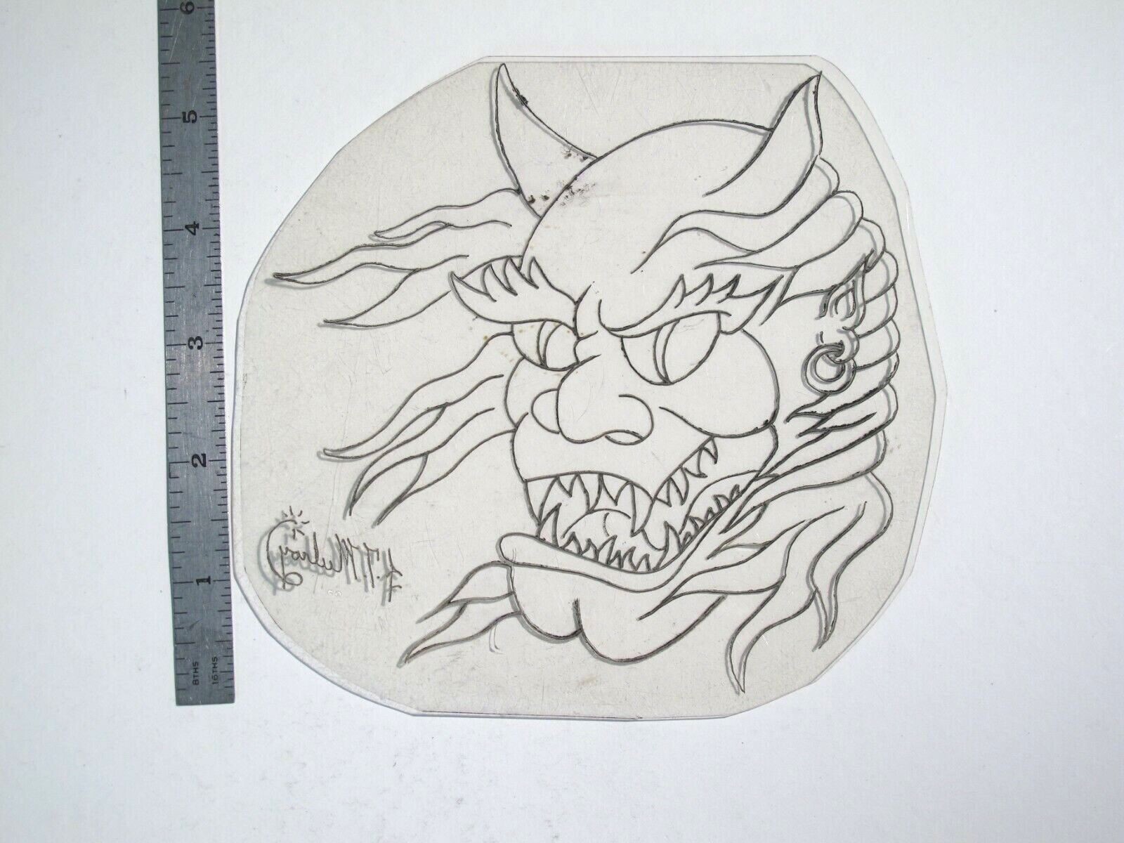 vtg 1960s 1970s Tattoo acetate stencil Earring Japanese Demon Head signed DD2