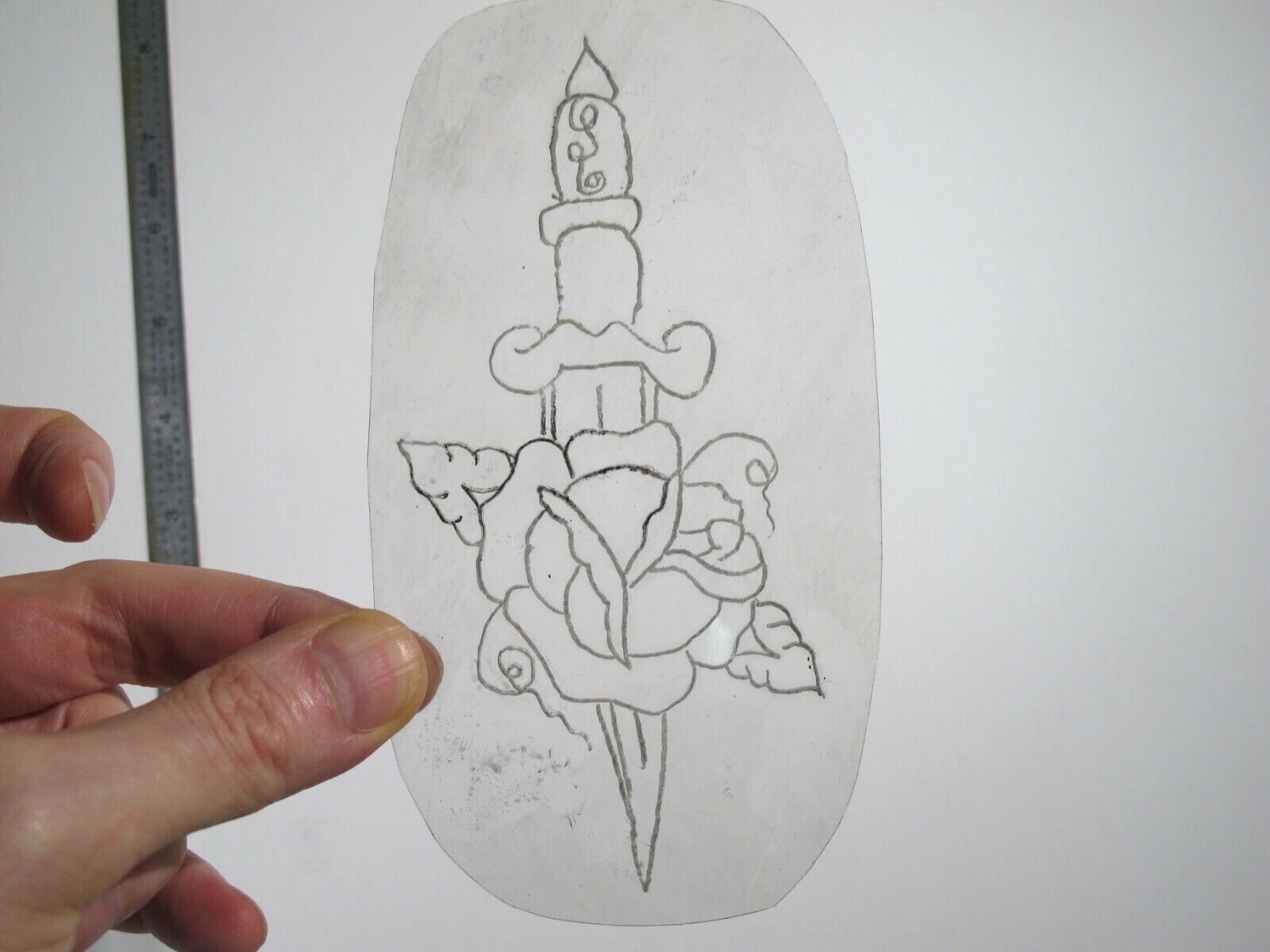 vtg 1960s 1970s Tattoo Flash acetate stencil Sword with Rose signed v2 KN3/4