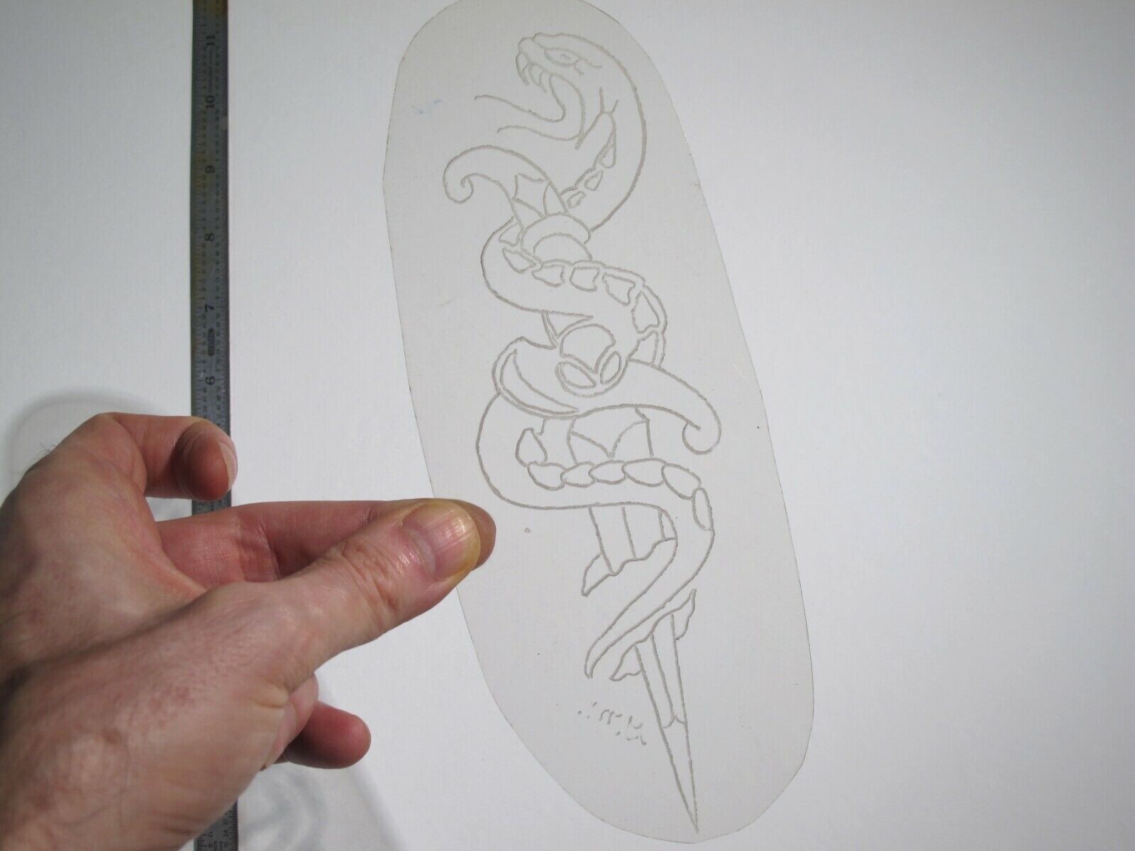 vtg 1960s 1970s Tattoo Flash acetate stencil Snake Wraps Sword signed v2 KN3/4