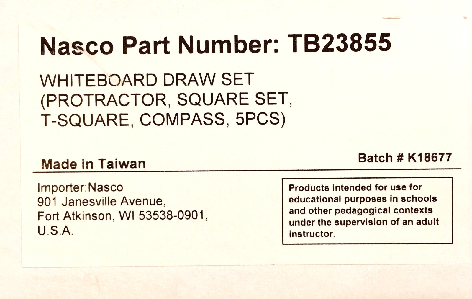 NIB Whiteboard 5-Pc Lg Draw Set Protractor/Square/T-Square/Compass Demo H-school