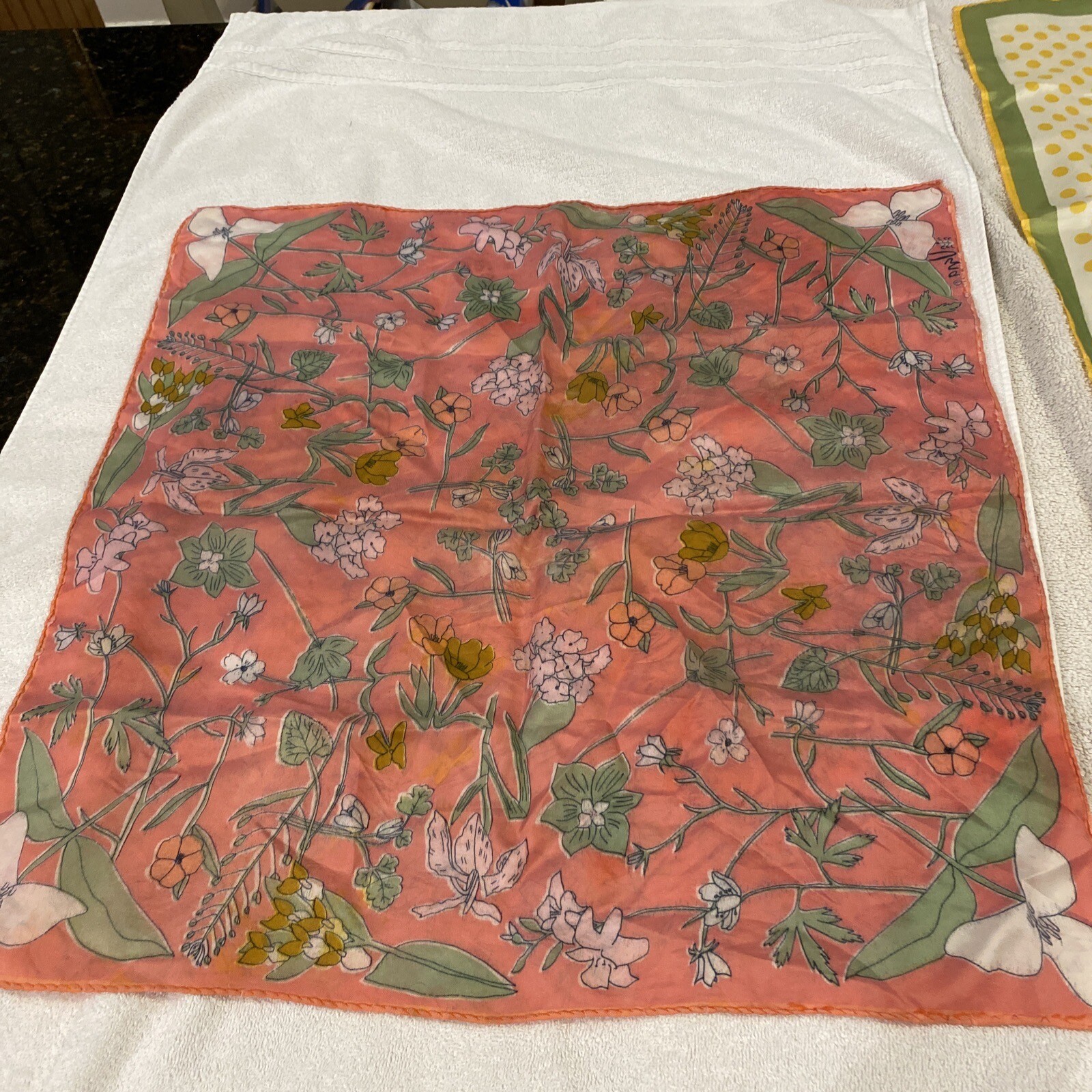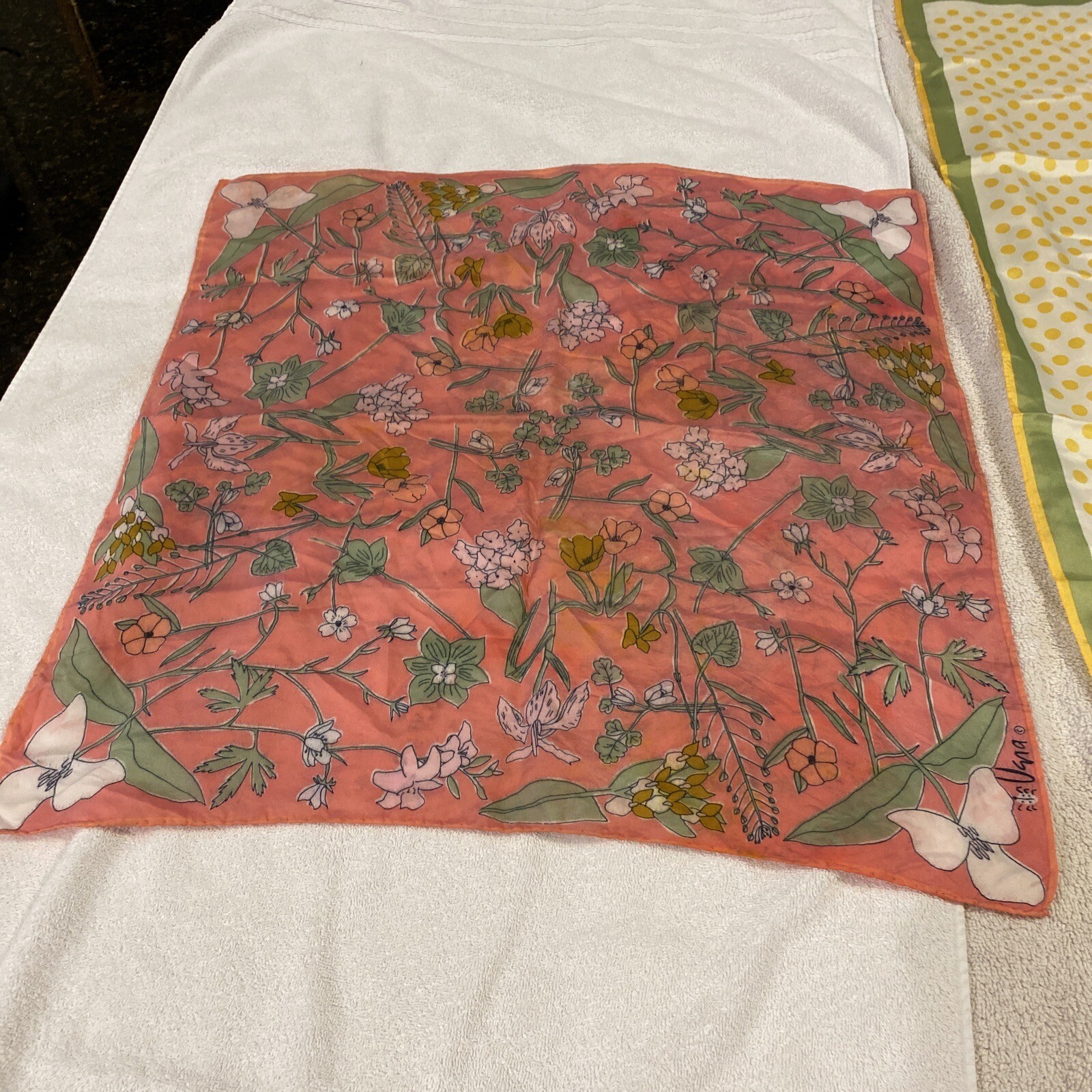 как выглядит 2 Vera Neumann Vintage Scarfs 1 - Pink Floral Square 1 - Yellow Polka Dot Rectan фото