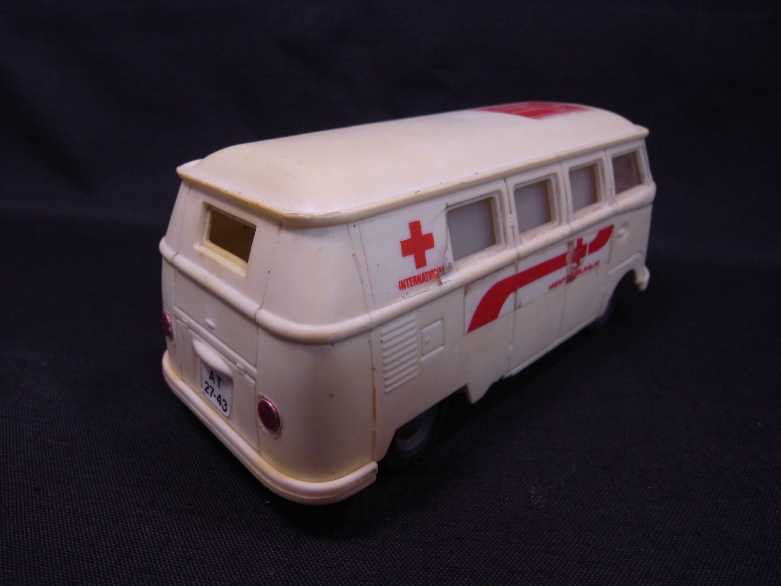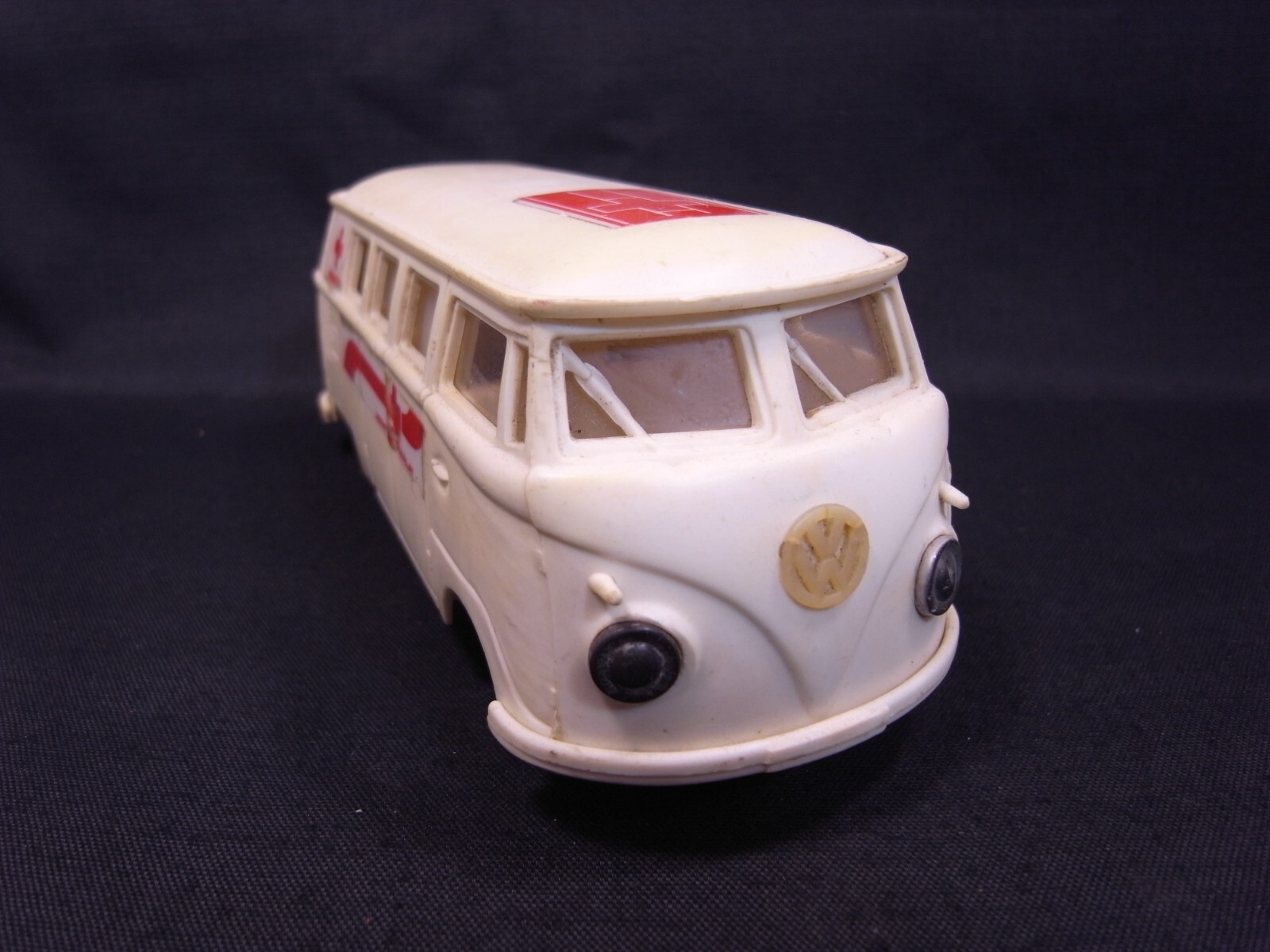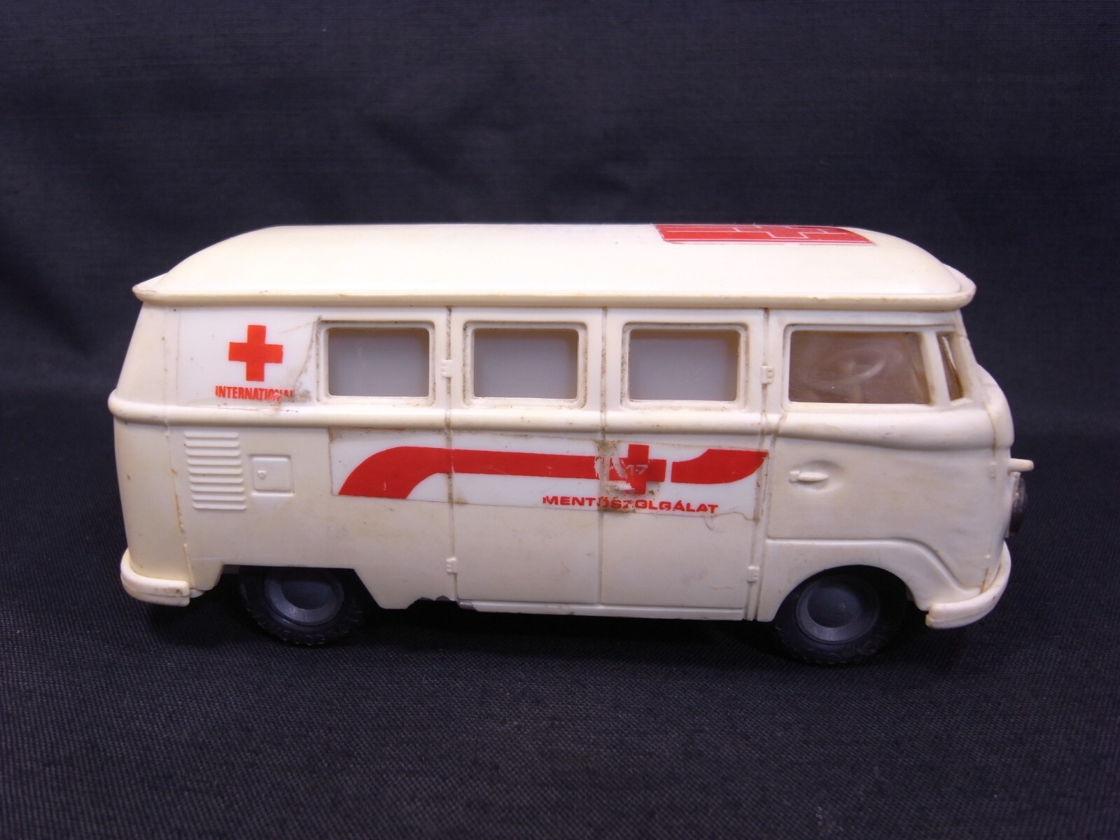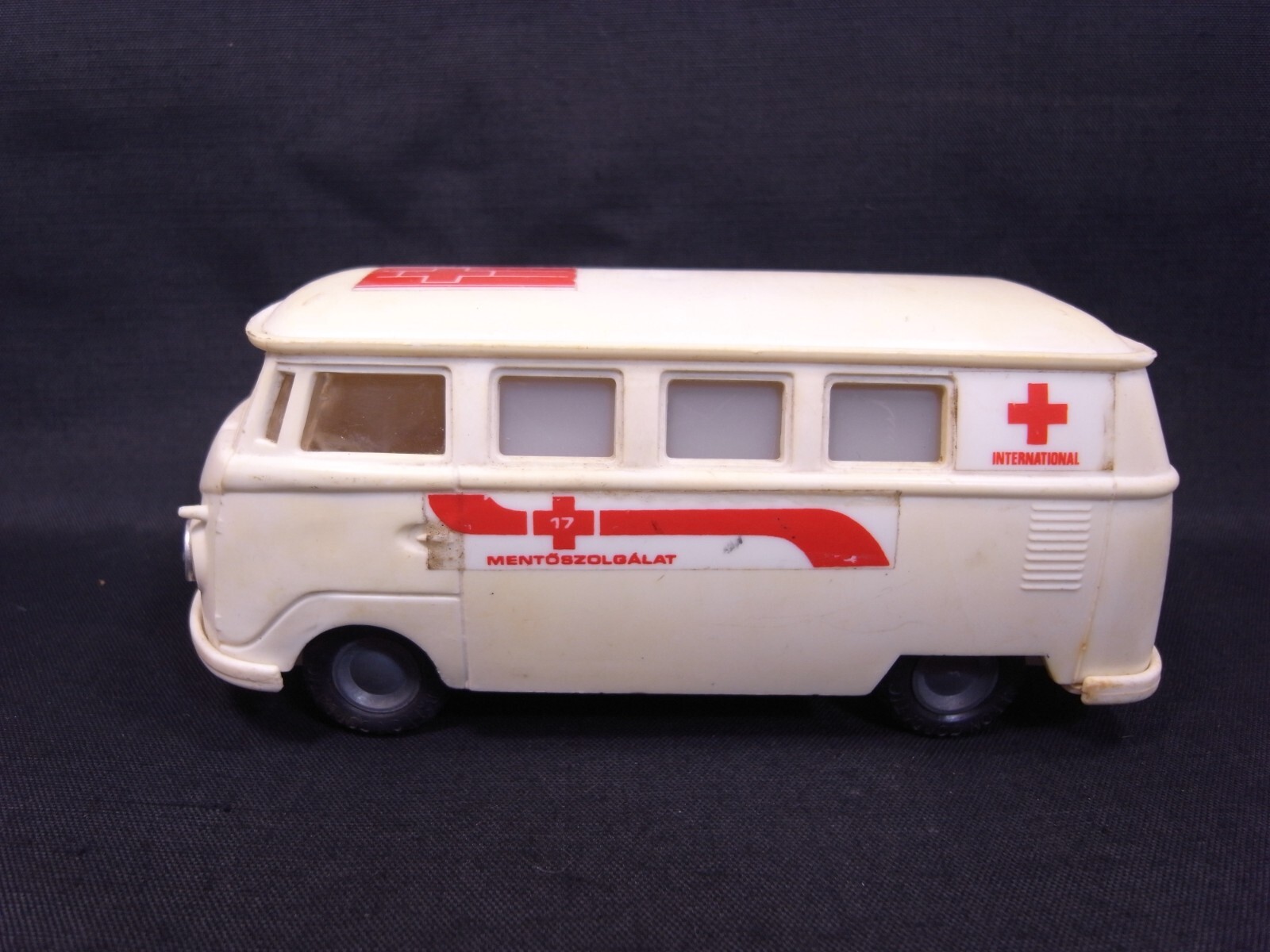 VINTAGE HUNGARY LEMEZ VOLKSWAGEN VW BUS AMBULANCE PLASTIC FRICTION TOY CAR