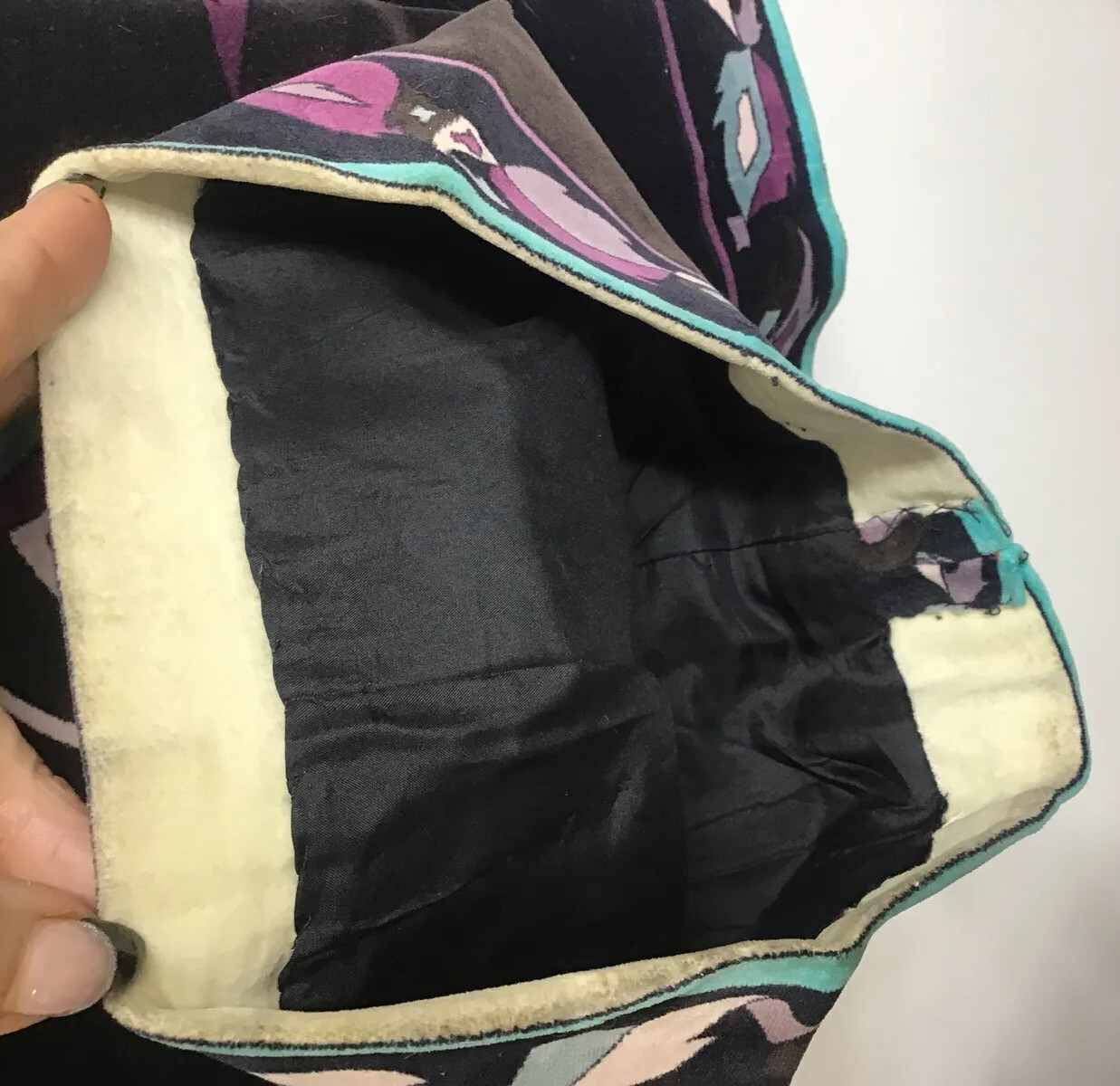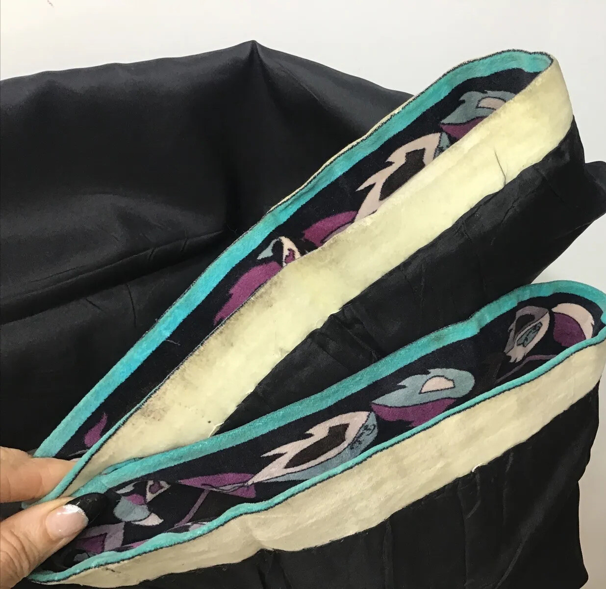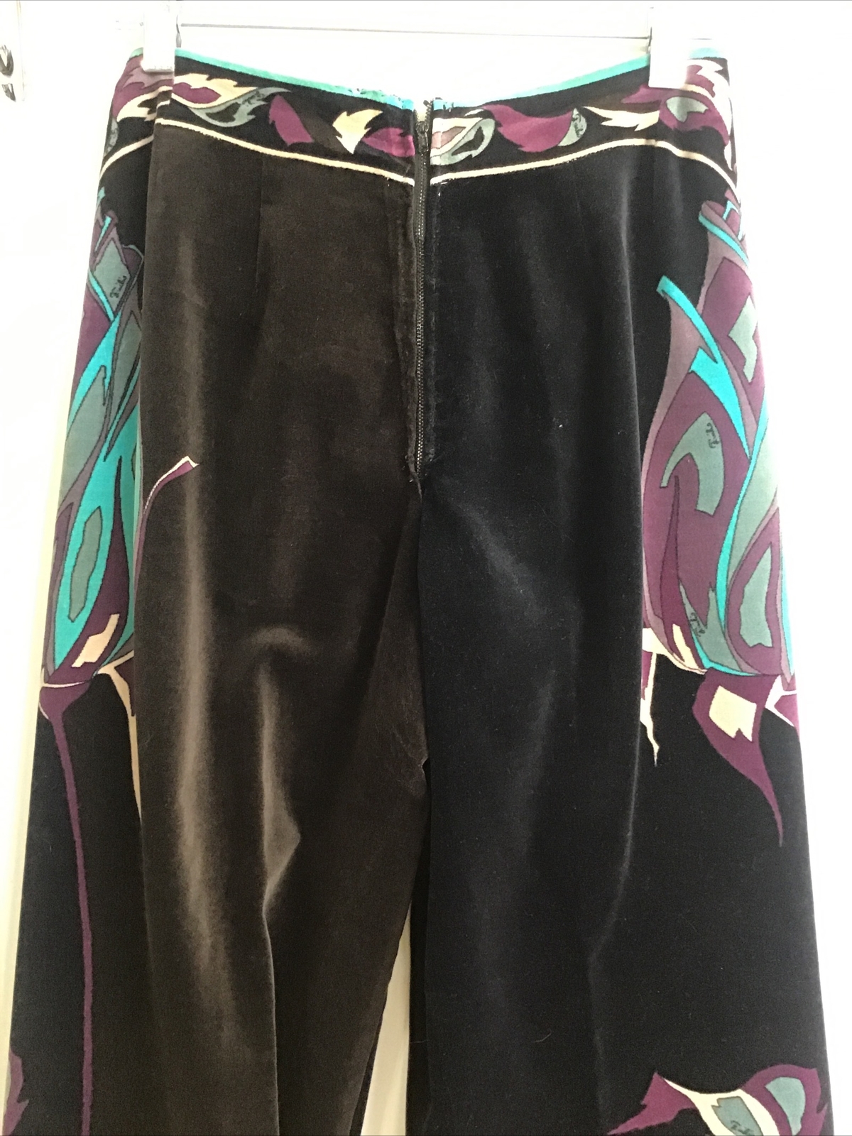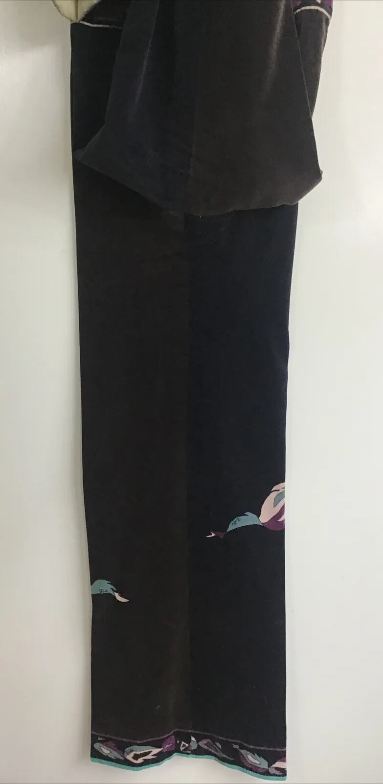 как выглядит Emilio Pucci Vintage Rosa 1971 Black Print Velvet Pant Wide Leg Size 8 фото