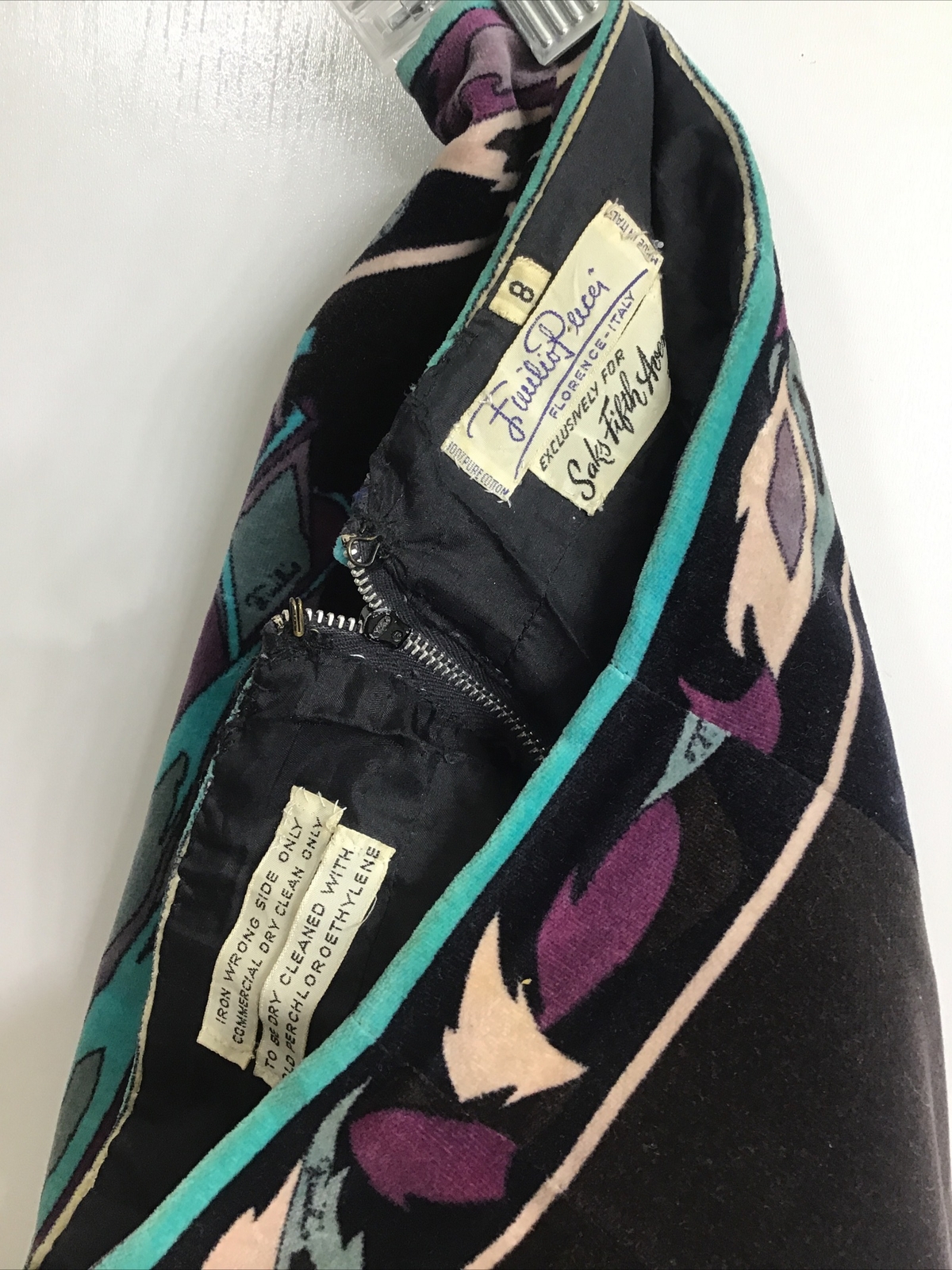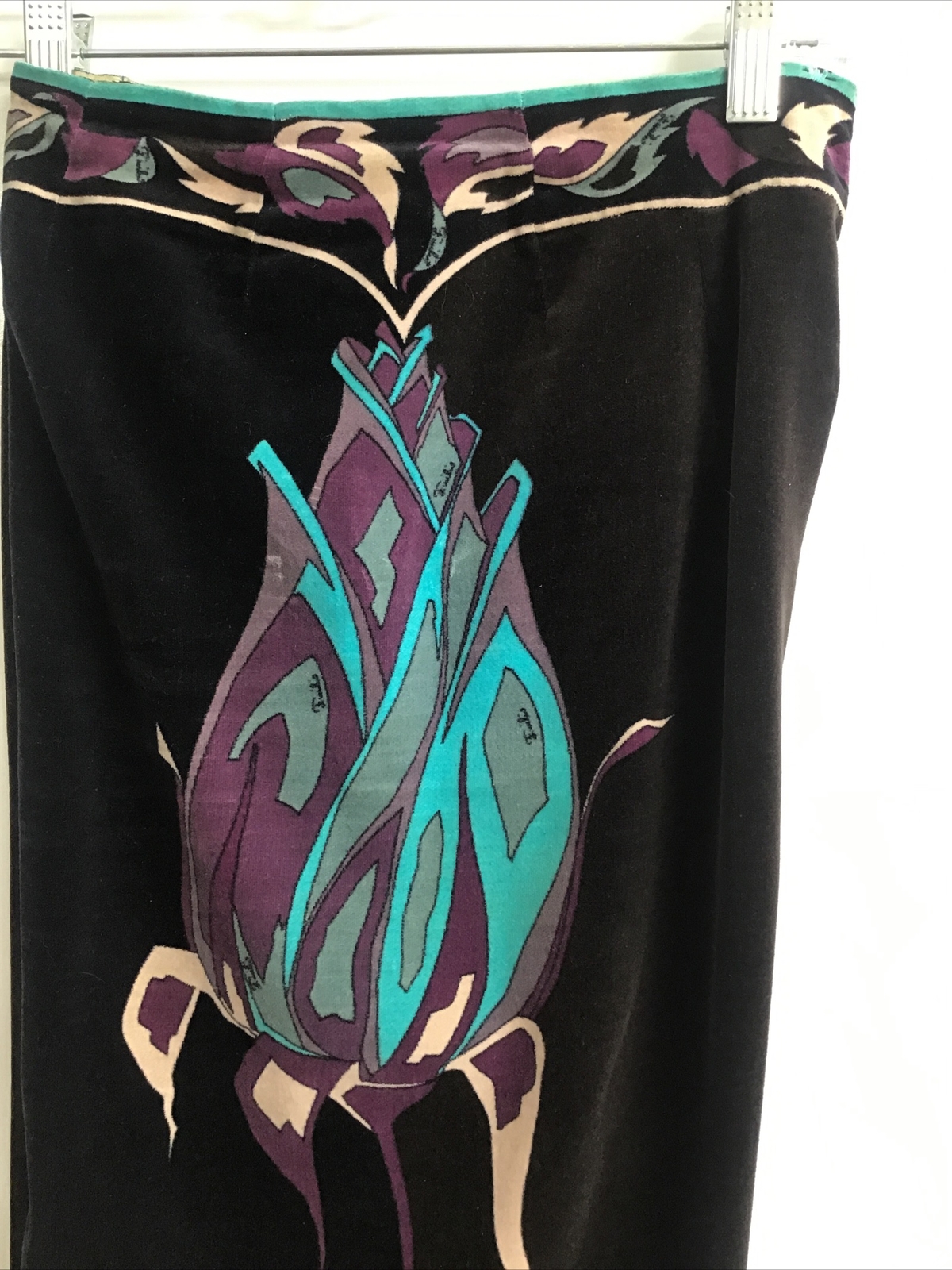 Emilio Pucci Vintage Rosa 1971 Black Print Velvet Pant Wide Leg Size 8