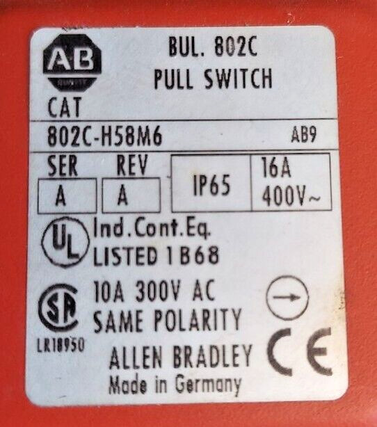 ALLEN BRADLEY 802C-H58M6 A-B Bulletin Pull Switch