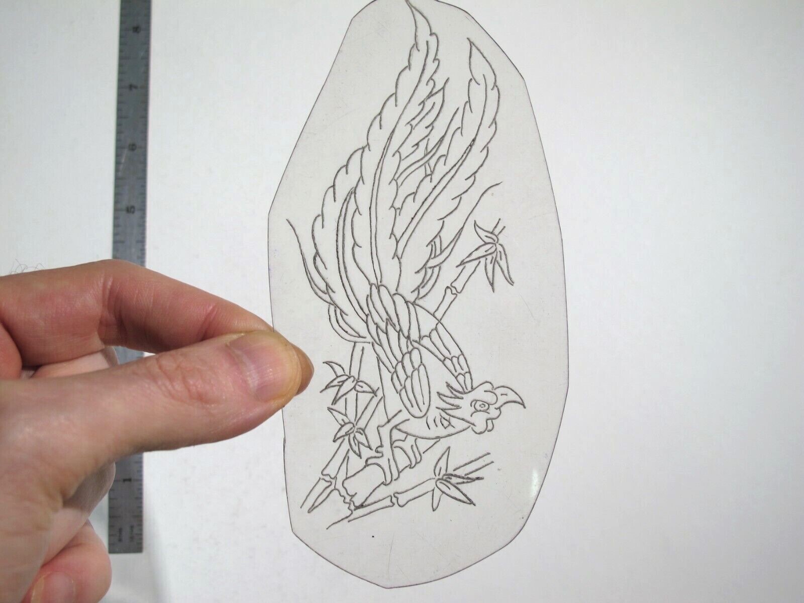 vtg 1960s 1970s Tattoo Flash acetate stencil Pheasant on Bamboo BR3
