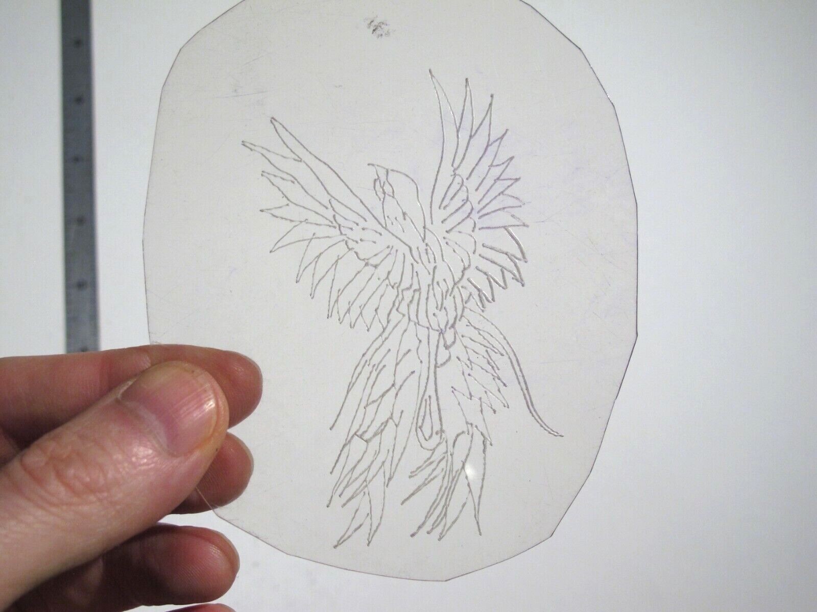 vtg 1960s 1970s Tattoo Flash acetate stencil Complex Feathers Tropical Bird BR3
