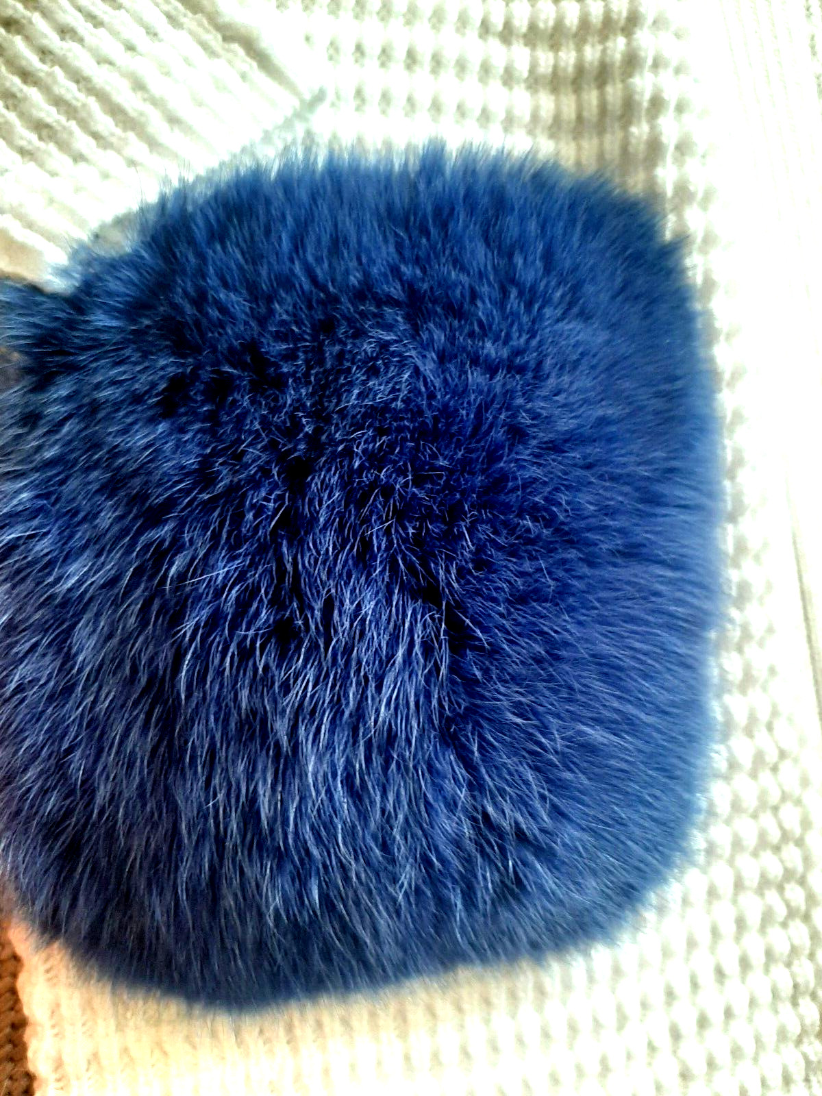 White knitted CARDIGAN with pockets made of blue natural fur, size M-L