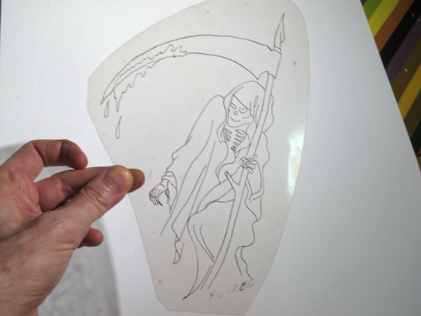 vtg 1960s 1970s Tattoo Flash acetate stencil Bloody Sickle Reaper REP2