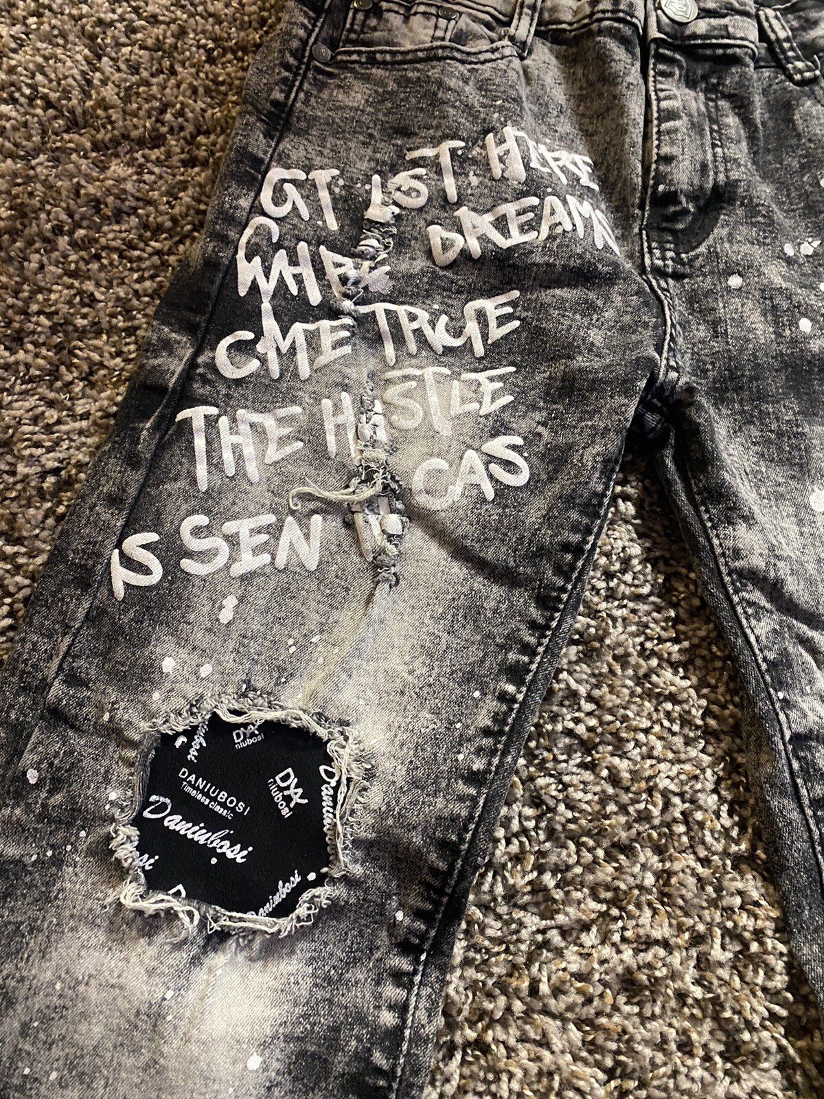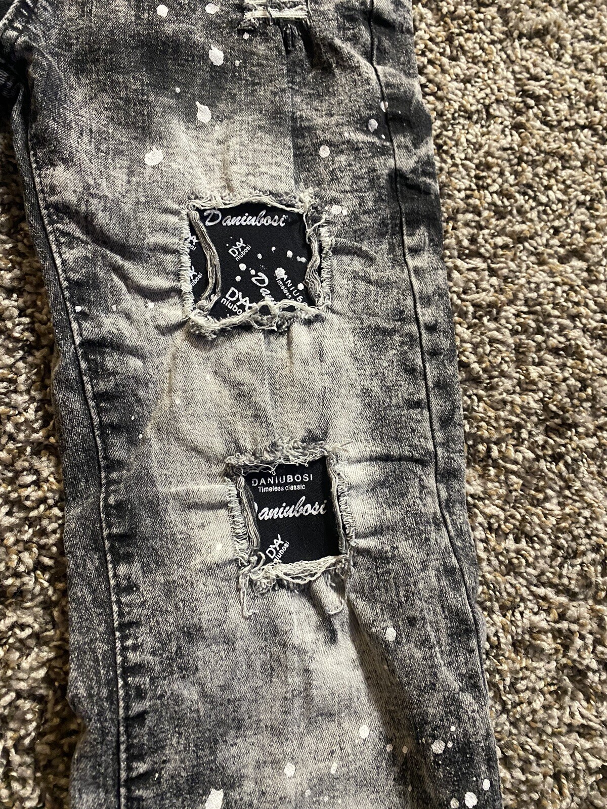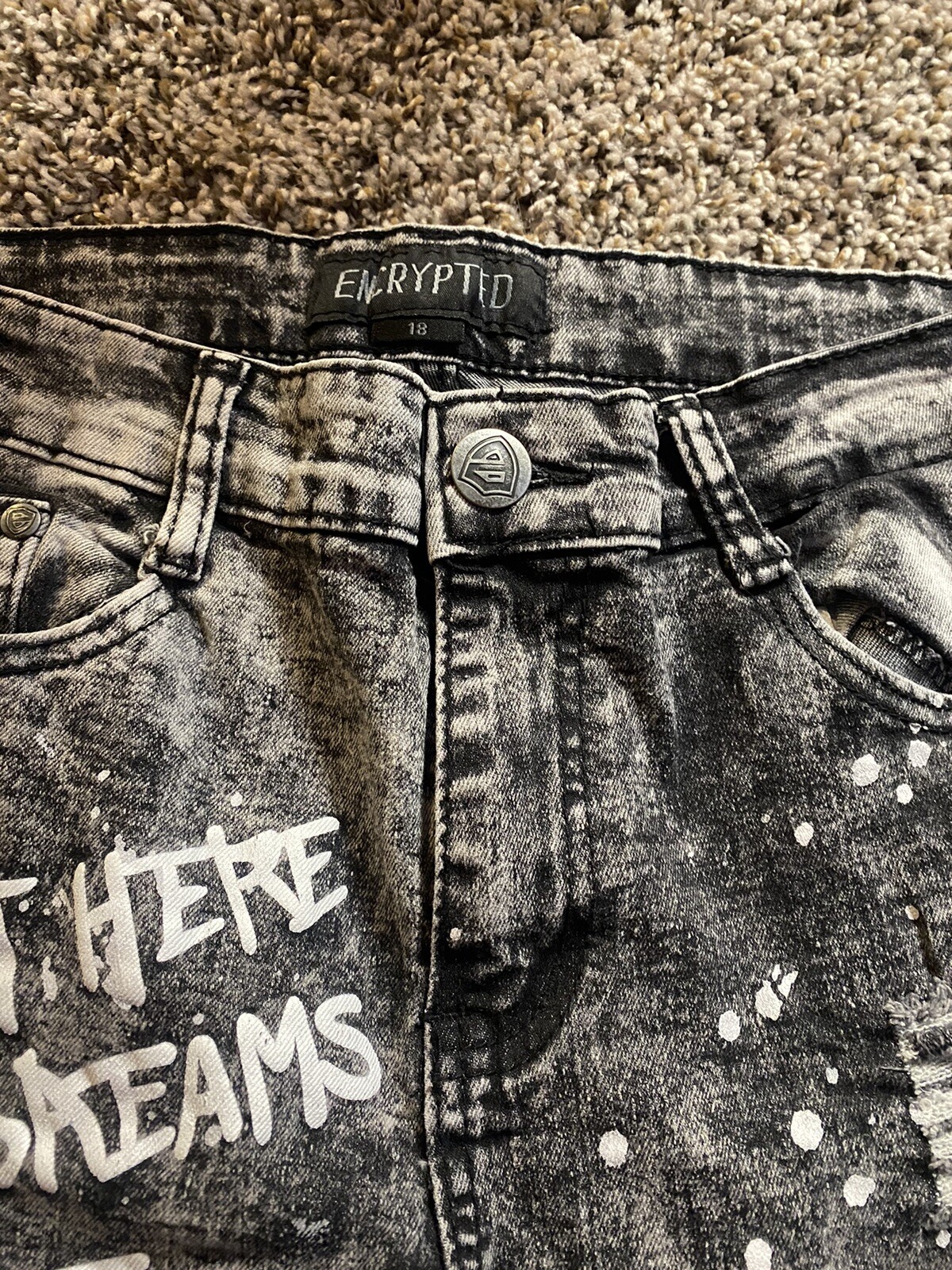 как выглядит Boys Encrypted skinny jeans size 18 distressed with paint splatters фото